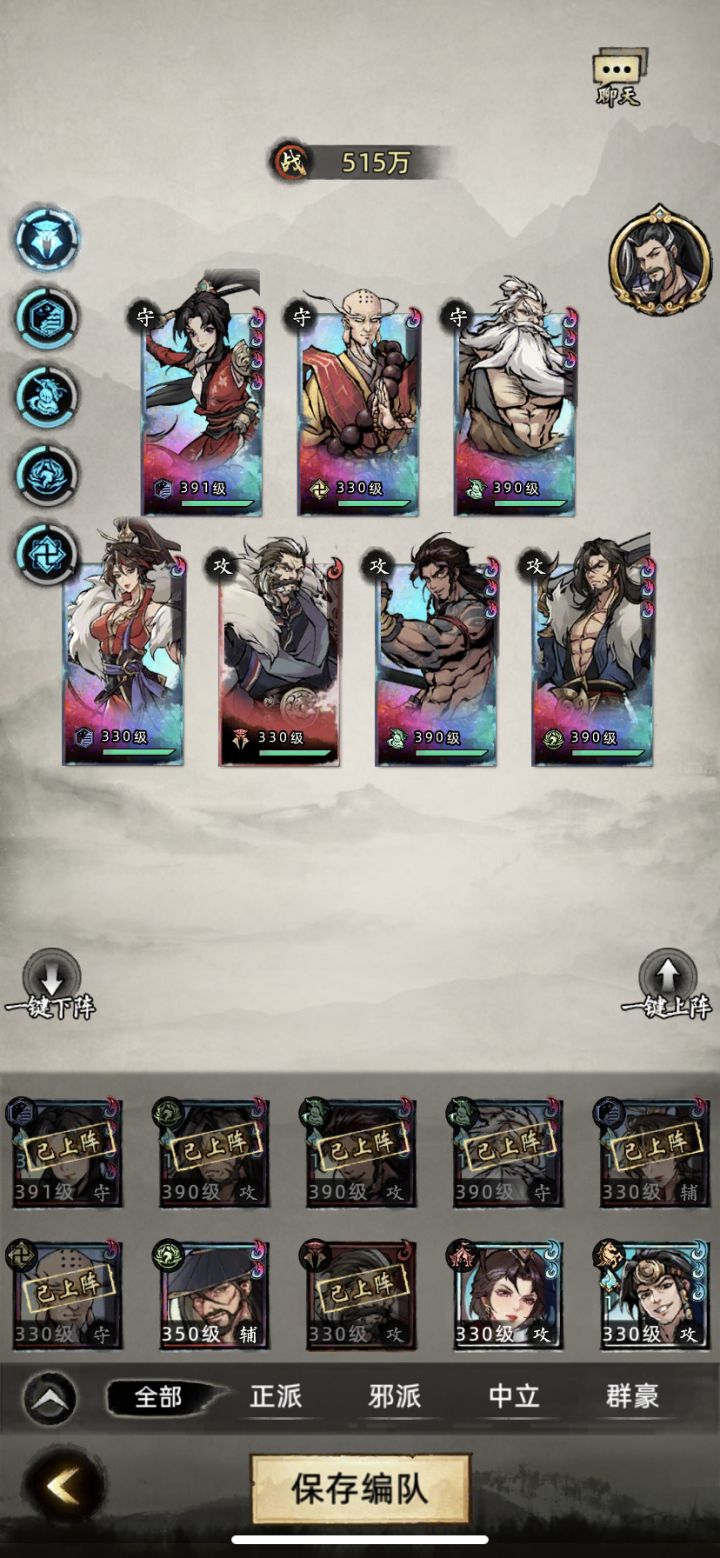 正派平民玩家攻略 刚开始玩九州江湖情时,我是零氪,没跳过特权,打斗慢,资源少,后来觉得游戏还不错,操作简便,挂机轻松,适合上班摸鱼,于是陆续氪了一千多。氪金多少和战力高低是成正比的,像我们平民玩家少量氪一点,对待pvp佛系一点,当养成游戏每天收收菜,也能玩。 因为我玩的是正派,主要讲下正派相关的,正派分为全真、神鹰、丐帮、少林四个门派,游戏中卡牌分为掌门,长老,弟子三种,只有掌门卡和长老卡有培