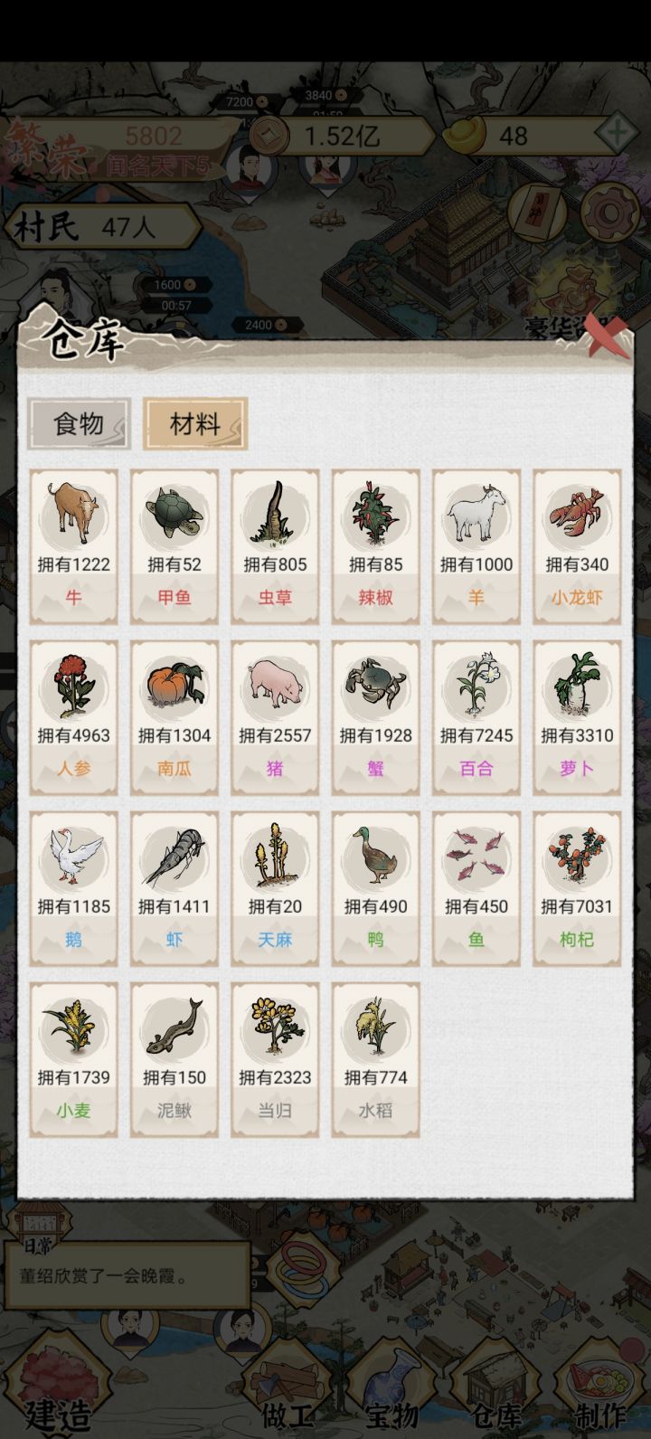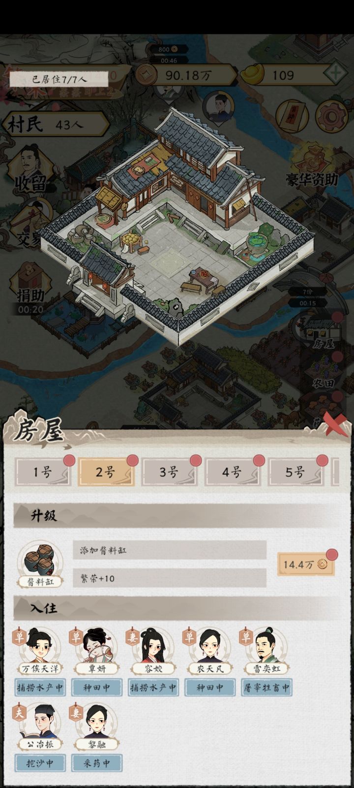 希望更新板块:1、增加村民自动入驻,不满意可通过收留系统更换。而且收留系统中男性多于女性,我现在一村的单身汉。2、售卖系统增加更多菜系,现在一仓库的农产品,价格不好都没有卖,而且繁荣度上去后基本不需要卖什么菜了。3、取消捐款系统,自给自足才快乐。4、元宝系统可限量,或通过铜币置换。5、结婚系统,增加单身与姐妹或兄弟的其中一个结婚。增加离婚,小孩能成年,兄弟姐妹能分开等。现在已经玩到顶了,没事继续干夫妻全红四属性。😂铜币完全没用处了,元宝还能升级宝物。