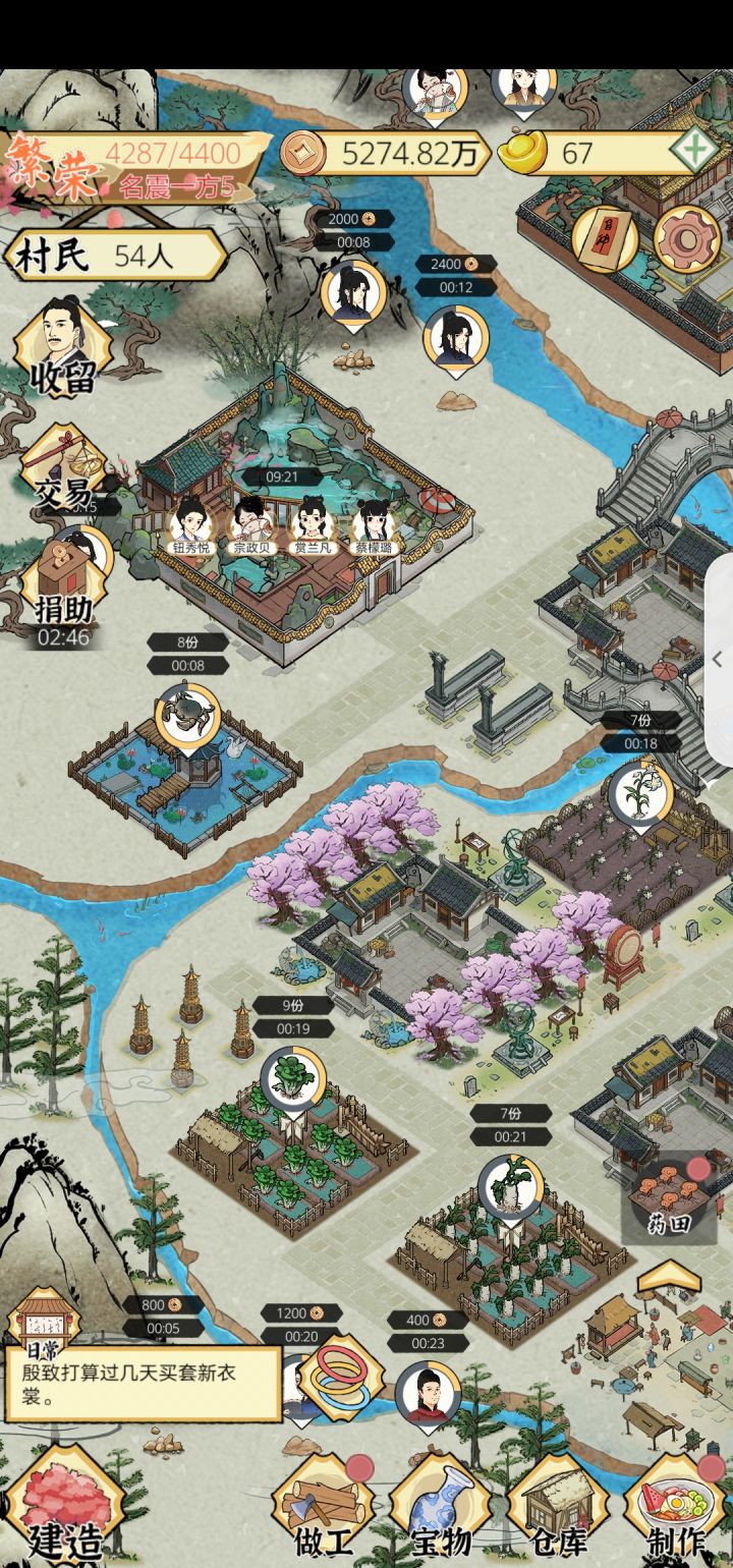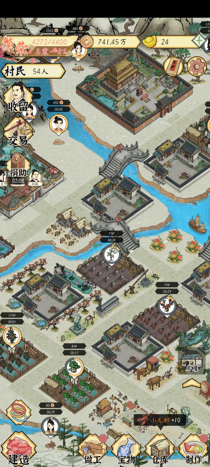 😂肝了两三天基本全解锁了,没事干了😅54个村民要打60份工😅建筑不能换位置除了这些比较影响游戏体验,这游戏还是很不错的,期待后续更新!!!另外希望能出个拍照模式欣赏自己建设的水乡