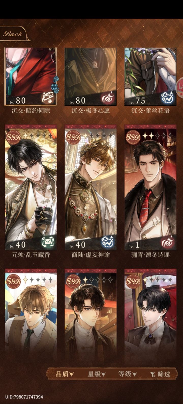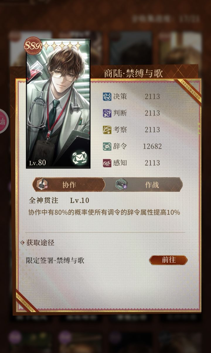 此游将于7.14停服,已入坑的别氪了,未入坑的别进了兑换码输入【骊青大哥、沉交、商先生、元烛】分别可获得赠礼【签署文书*5】,一共20抽奖励。 蛇年大吉(已失效)白色情人节快乐抽卡限定池抽数继承不用叠卡,抽一张即可收手养成好感度达到Lv.26可得一个Q版头像升档后多为双人卡SSR卡面数值都差不多,没有强度焦虑前期先