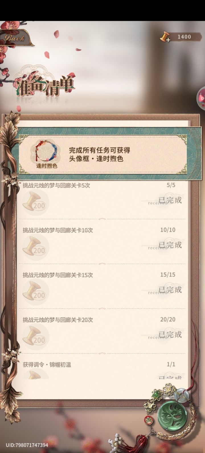 梦与回廊挑战失败活动也要记次数,但是不消耗每日梦与回廊的次数,所以如果没有养元烛的话可以在梦与回廊挑战失败20次,稍微有点费时间但也能完成任务像我就只有一个40级的元烛