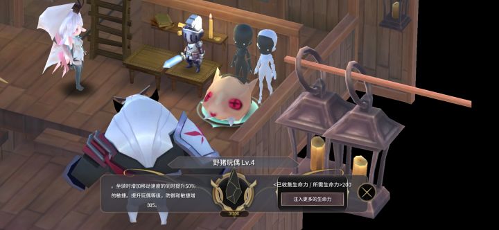 野猪玩偶升到四级后,防御理所应当又提升了5点,敏捷加成却又反向减少了5点。