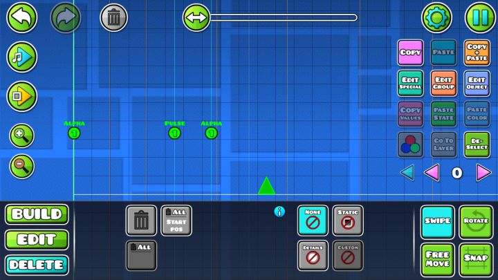 *特殊原因,本贴不提供传送门。*这一次难得编教程,我就把3个一起讲了吧。*首先是Start Pos。*这个界面上次已经讲过了,就不多说了。*Start Pos的作用就是让你在它所在的位置开始游戏。这时开始游戏,右上角会出现"Test Mode"的字样,通关后它会提示你,你需要不用Start Pos通关才能上传关卡。所以它只是一个测试的工具。*其设定默认为原速原重力普通Cube,你也可以通