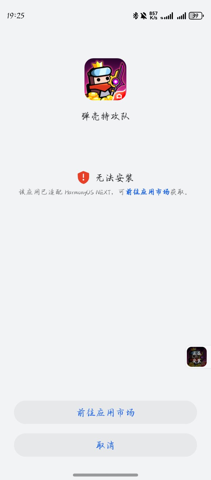 下载完不能安装,查验应用弹“应用商店已适配”,强制去安装华为的渠道服