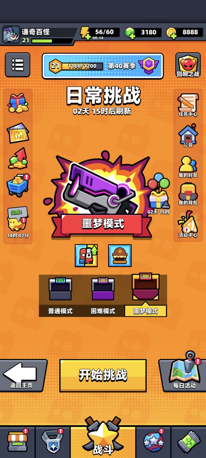 为什么日常挑战三天才更新一次,不应该每天更新一次吗,三天一更的话,这样每天更新的赛季任务里领取日常挑战宝箱的任务不是好几天都不能完成,不合理啊#弹壳特攻队
