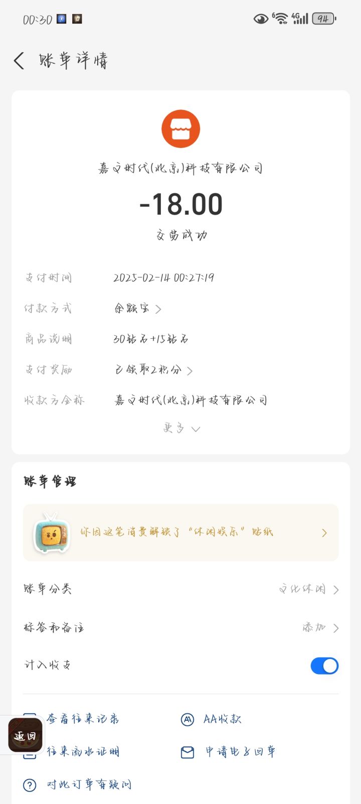 刚刚充了18块,游戏页面就卡住了,没办法我重启了,发现钻石没到账,可是支付宝账单已经生成了,你看图2