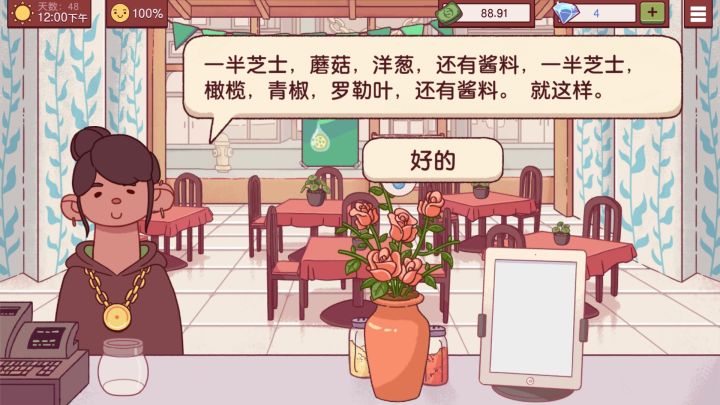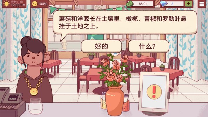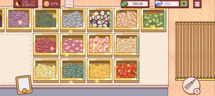 吐槽一个点。第四章会开启大蒜和小番茄种植,如果没有西红柿和大蒜,客人的订单你不能拒绝,必须要接➕大蒜和西红柿的单子,你拒绝不了!同时种植大蒜和西红柿真的巨坑,他们的种植时间和现实生活里的时间是同步的,也就是说游戏里种八个小时,你要等到现实生活中过去八个小时才能收获!如果想要提前收获,只能用八九个钻石💎甚至更多的钻石收获。我淦,钻石那玩意儿多难弄,而且看广告收钻石也是有次数的,多了根本没有广告了。这