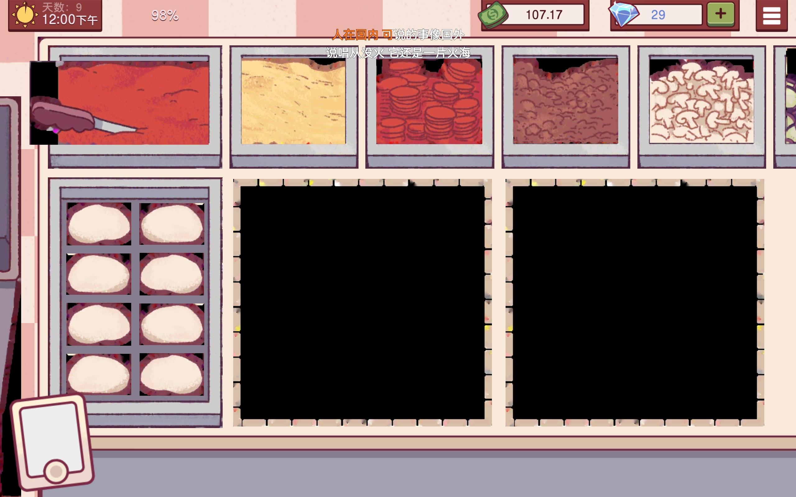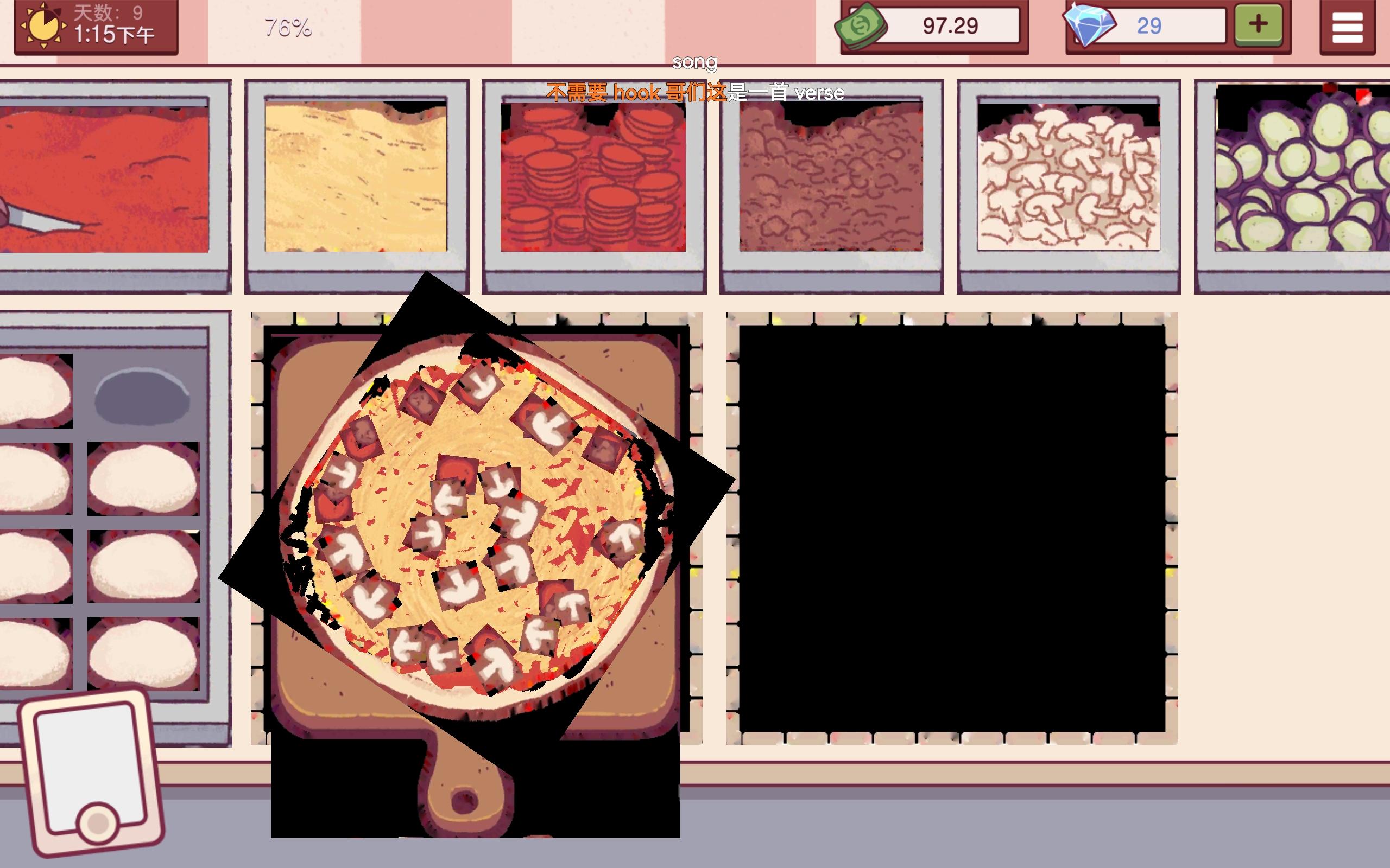 4.11 为什么打开是一块一块黑的暗黑风啊,感觉像店里被烧了一样,而且披萨也是像马赛克一样,边缘有一块黑一块黑,什么意思啊。就是图1-4这样4.12 又变了……我累了彻底玩不了了(图5)