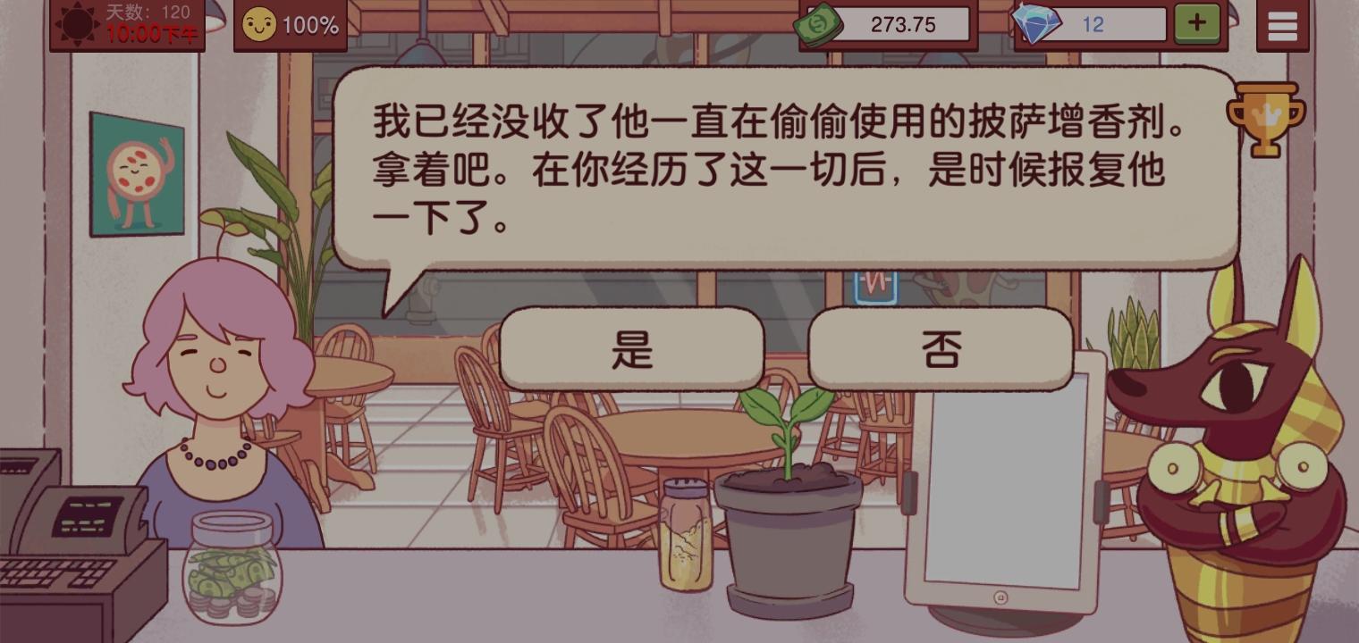 有人知道第三章里那个神之美味怎么过吗我只知道p3里那个人来跟我说他家是有问题的(都怪蓝毛太嚣张了激发了我的好胜心)但我也怕自己到时候也出问题大晚上的不想再举着手机在一天最末的时候退出再来一次存档了然后我就输了,第二天稀里糊涂的解锁了第四章真的好想知道然后我用了那个什么增香剂(?就是用了披萨会很香的东东)会怎么样,结局还是我输吗