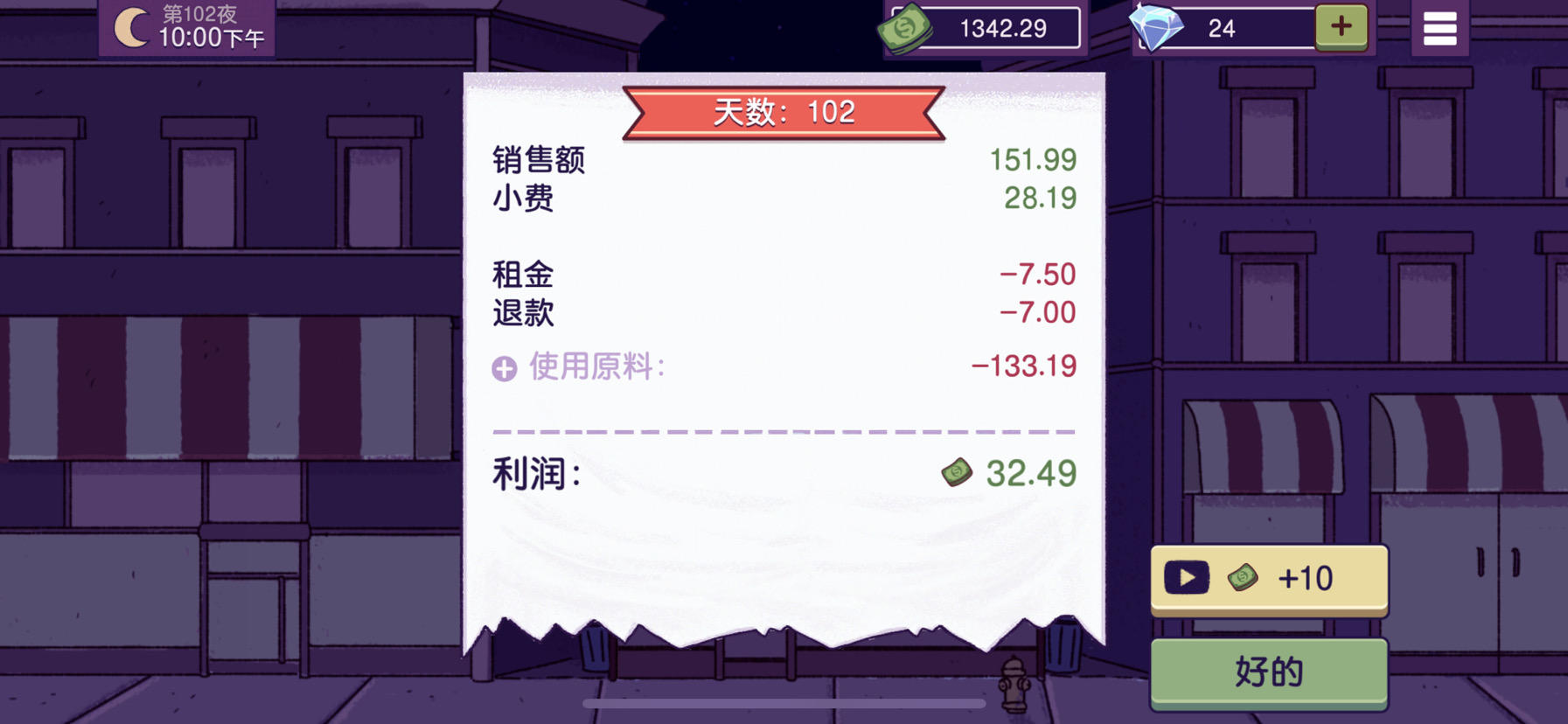 我不理解 每结束一天的营业 强制弹广告就算了 为什么广告结束还这样 必须得结束游戏从新上还可以 能解决一下吗😅