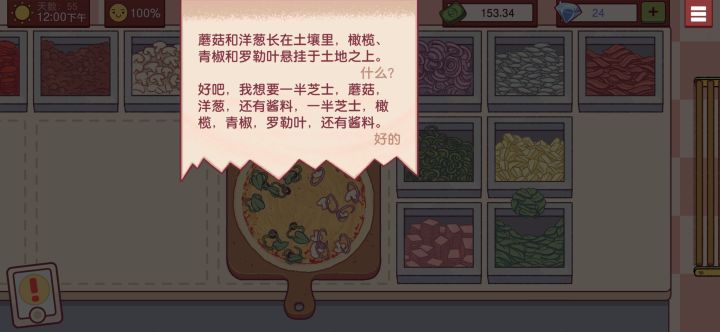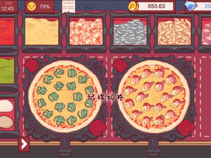 边玩边更,随时退坑以下省略基础:面饼+酱料+芝士默认白面饼和番茄酱超大紫色番薯=茄子草本=罗勒叶把它弄哭=洋葱上万种烹调方法=虾有“辣”有“椒”的纯面饼:只要腊肠无酱无芝士经典肉类披萨:腊肠+猪肉粒松露披萨:蘑菇初始素食披萨:蘑菇+罗勒叶+茄子纯素食披萨:所有素食不加芝士“榄洋洋”:橄榄+洋葱红萝卜披萨:洋葱萨拉米披萨=莎乐美披萨=意大利腊肠披萨:腊肠至尊披萨:腊肠+