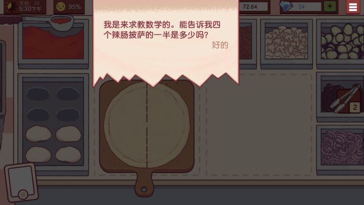2022.1.25我又回来了,游戏更新了好多,我有时间就会继续更新,新出现的披萨我会放在上面的2021.7.1更新最新版本的钱数变了,我重新玩了。那可能有看攻略的小伙计玩的是旧版本,我会在下面把两个版本都举出来。(以下为原贴)啊,已经有很多大大们出了攻略,我做完攻略后也纠结要不要发,后来我一想我玩了两个110多天,就为了纪念一下也要发!需要说明,以下内容没有针对成就和省钱还有效率等部分