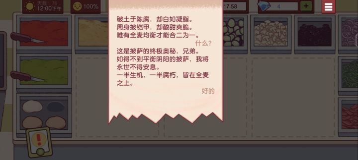 想问大家噢 第二章有一个披萨神徒是酱料预言家 但是我给的面饼除了酱料之外还多加了芝士和一块辣肠(当时没注意来着,找攻略才说只用给涂番茄酱的面饼就行了) 😰 给她的时候说我的未来很美味 但是隔天到大众点饼中只给我的披萨打了一星还吐槽… 那这样这个教徒算是过关了吗😵 假设不算过关的话 那第二章还能完结吗😱 如果不能因此过第二章我还能趁早重玩😭