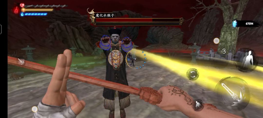 说下思路,开局蓄力跑过去刺水猴子,再平a两下,然后往左边连续闪避两次,这时候僵尸会到你面前,给他一剑往右闪,水猴子会加速来到你面前,给他一脸后退,这时候他们两个会一起用远程,拉开距离,水猴子会加速到你面前,给一剑闪避,他会慢慢接近你,打一下闪一下,几下就死,然后僵尸就简单了,打一下闪一下就OK了。