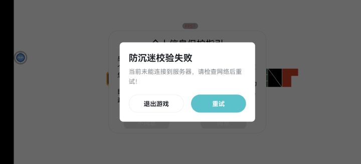 加5群半天没人给过,别的游戏第一次进都弹出防沉迷校验,这个游戏不弹校验,直接弹个游戏时长为零,只能选择退出游戏。我一开始以为是tap的原因,又随便下了个别的游戏,人家正常弹出防沉迷校验。有该游戏管理说明下情况吗