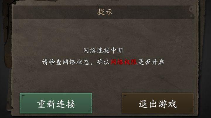 今天早上看广告的时候还好好的,给剑升完级之后打了一会儿就出现这个提示,说连不上网,检查了一下手机联网没问题,权限也开了,点了很多次重新连接还是连不上,希望官方解决一下这个问题。