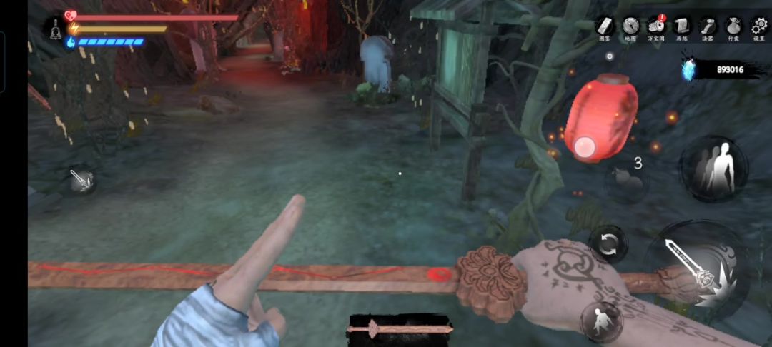 那个村前驿站门外边儿,有一个坟堆,还有三只小鬼在祭拜剑神令。第一次插入鱼叉磨时候门就开了,然后直走会有一个魂灯和打铁的大哥,右转就行
