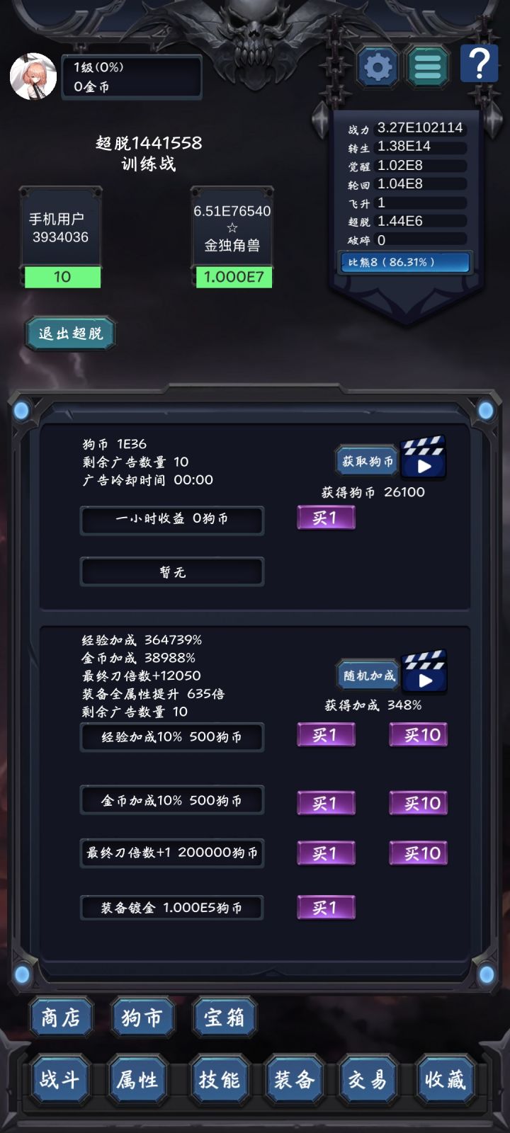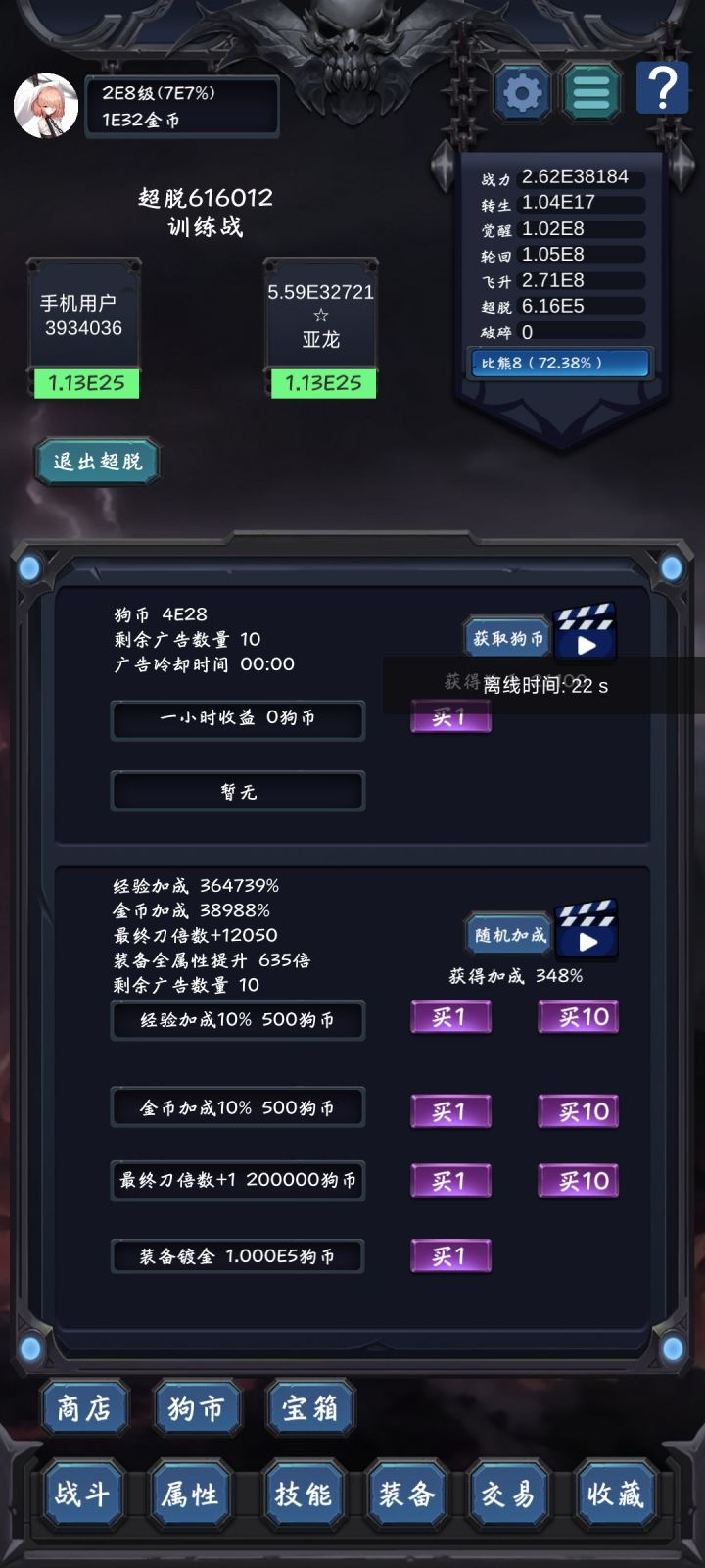 更新前e17转生挂一个小时能刷1e29狗币,更新以后e17转生从4e28狗币开始挂了一晚上,早上起床发现还是4e28狗币,狗币加成不生效了。。。。补充:狗币掉了,我超脱以后掉了,超脱前就没狗币