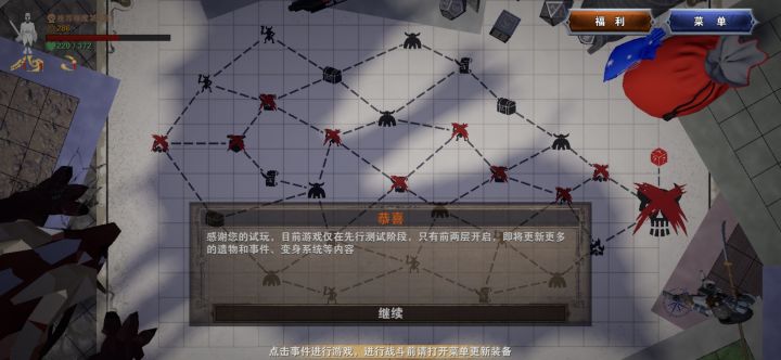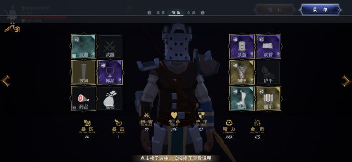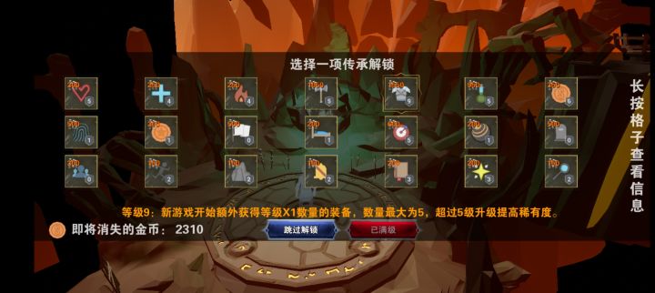 看了攻略说的长矛好用,结果遇到个紫长矛,直接打通关。(之前被小怪吊着打),自己骰子偷了个20,额外有了一个遗物,持续回血挺好用。