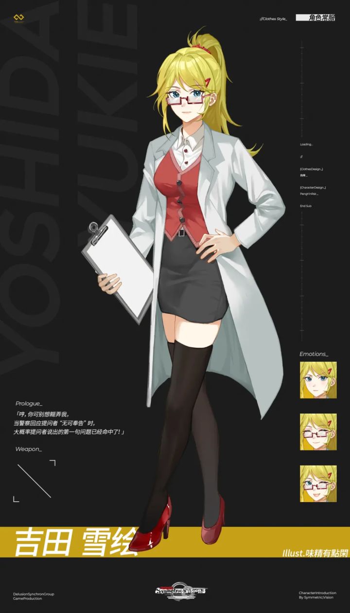 #镜解视界# 角色介绍 Part.10://[re:吉田雪绘个人档案.txt ] 正在解码中...——「欢迎来到,东京RICEN-BSI脑科学研究所。」「我是这里的所长,吉田雪绘。」 「 你也可以叫我的英文名,Yukie Coleman教授。」 ——Illust.味精有點閑Cover.Symmetric;Vision