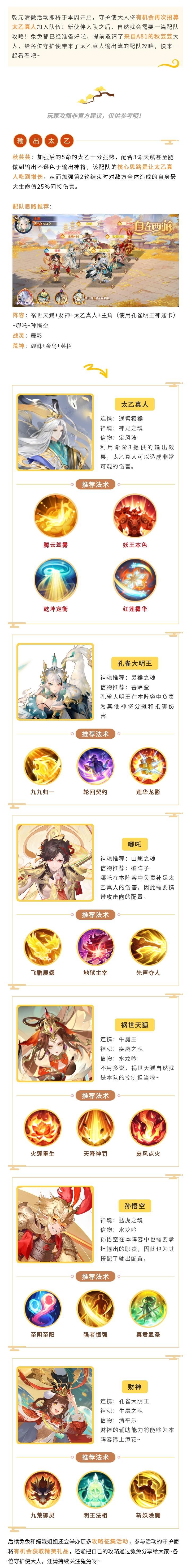 新神将就快登场了,但笨蛋兔兔绞尽脑汁都想不明白该怎么配队,这时候就该求助各位守护使啦。对啦,要不咱们再组个团,这样兔兔就能收集和分享超多攻略,让其他守护使也能畅快游玩~西行大师团正式开启招募啦!听说您是自在西游高手?那就快来找兔兔报名吧!奖励多多哦~提交问卷后,兔兔需要审核一段时间如果审核通过,就会尽快联系守护使大人 (≖ᴗ≖)✧还请耐心等待~最后,兔兔希望守护使多多报名如果能帮忙