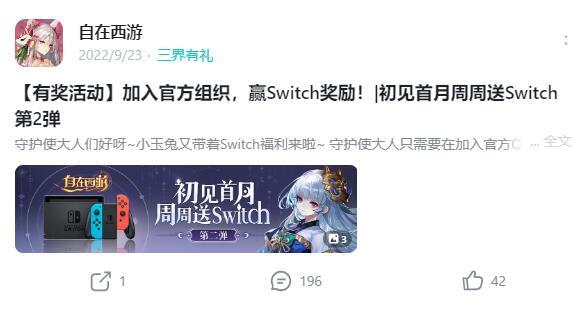 【已开奖】加入官方组织,赢Switch奖励!|初见首月周周送Switch第2弹