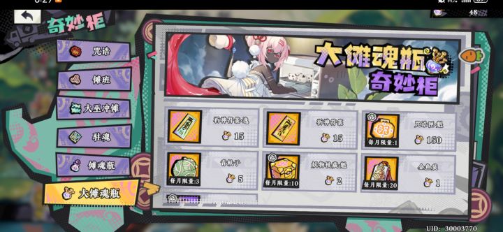 BANKUGUIOKDUNA666666GUISHI8888HUANGJIN88JMRH7L5D6EYRSKKMH538开局的新手池里选玉叶,最好是双金玉叶,没有玉叶在打关里会很坐牢。目前up池里建议抽取越女,抽一井(本游戏一井为200抽),整个3魂越女(前期给的抽数很多,以我本人为例,5个小时左右整了一井,角色的魂系统中3魂为机制提升,其余魂为数值提升),其中会有抽卡副产物大傩魂瓶