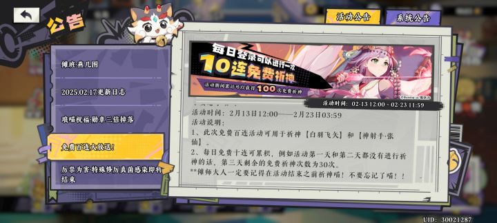 出bug了,今天的免费十连没有了,管理员修修啊