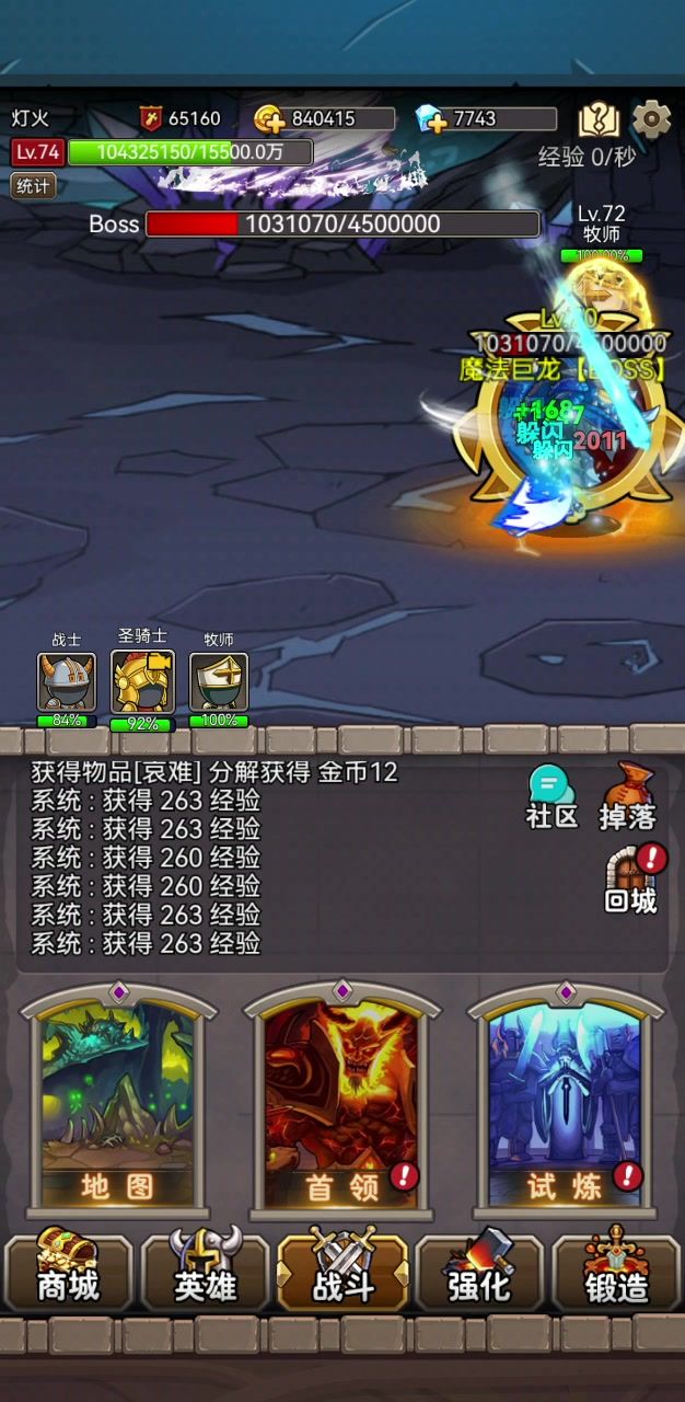英雄选择建议战士恶魔,30级拿个牧师,这样打起boss会比较丝滑,挂机也能战撸,金币难度二也能多打点法师可以后面也练练,毕竟爬塔物攻魔攻都会用上,特别碰到物反和魔反,调整下上阵英雄能快不少60级才能开第五个英雄,因为我出的法师所以在爬塔打魔反会慢,所以我个人会出刺客,你们看自己需求最后说下牧师yyds,自己也是40开牧师后,强度一下就上来