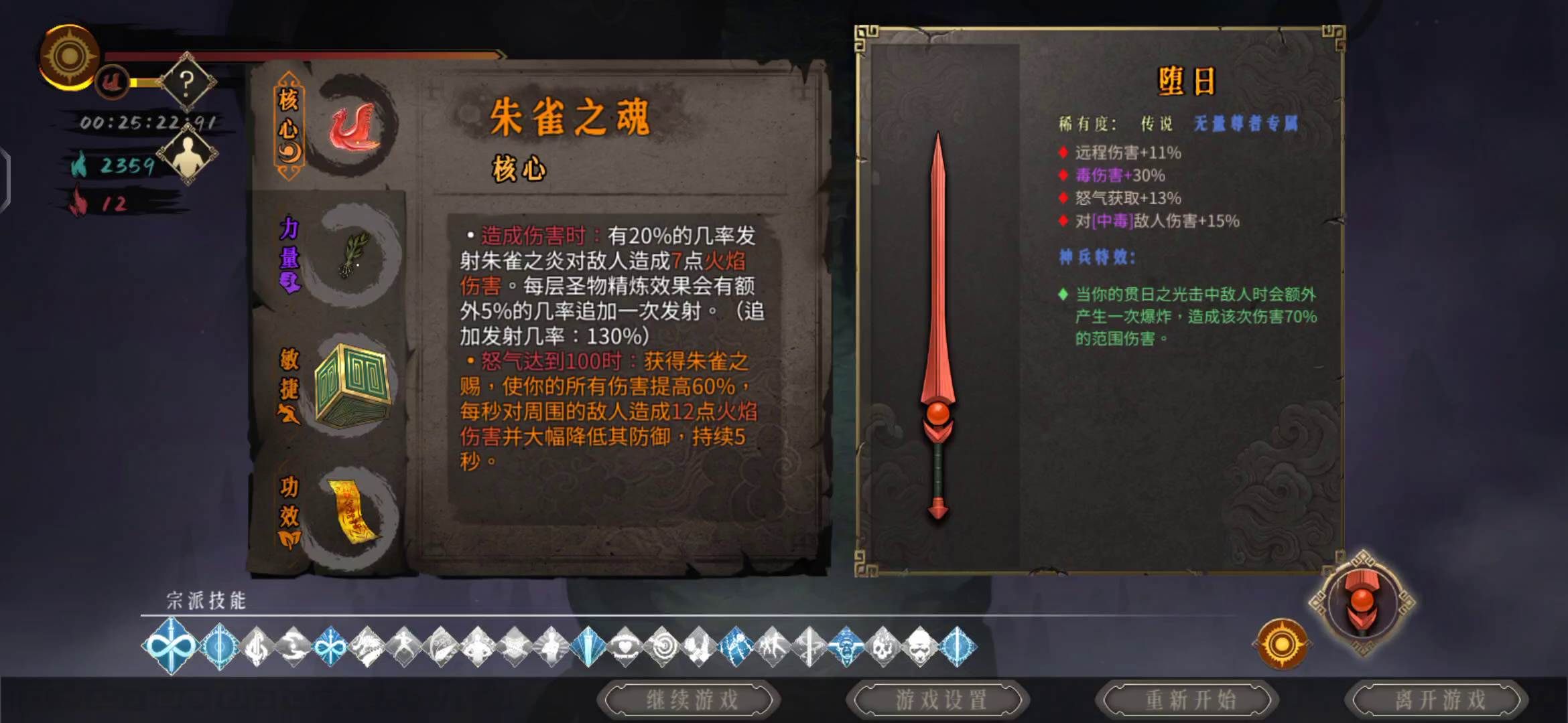 这个玩法就是在冰二的基础上点一个飞剑与普攻减少伤害,增加元素伤害的挑战就好,元素伤害嗷嗷高 武器:主推三元与太祖 一号位:三色结晶或破冰石 二号位:北风花,三色结晶或无脑堕龙 三号位:可以放一些自己玩的舒服的圣物也可以点裸衣不带这个位置的圣物 四号位:三色结晶,猪心或者点裸衣不带 功法方面的话,冰二的核心寂灭之眼,寒川之刃,狂风之刃,狂息之风,有这几个基本上不怕伤害不够其他的都可以带,不推荐的话坏死恶寒,我知道会有人好奇我为啥带不动如山那个是因为我点错了,本来有很多可以躲掉的伤害却只能躺尸躲或者嗑药硬抗,还有二阶段时候万剑齐发也是只能靠走位躲,而且也没躲掉多少(本人手残),有很多挑战是对自身有益的buff,有的buff甚至比挑战自身的debuff好很多的,在开始之前可以自行取舍一下