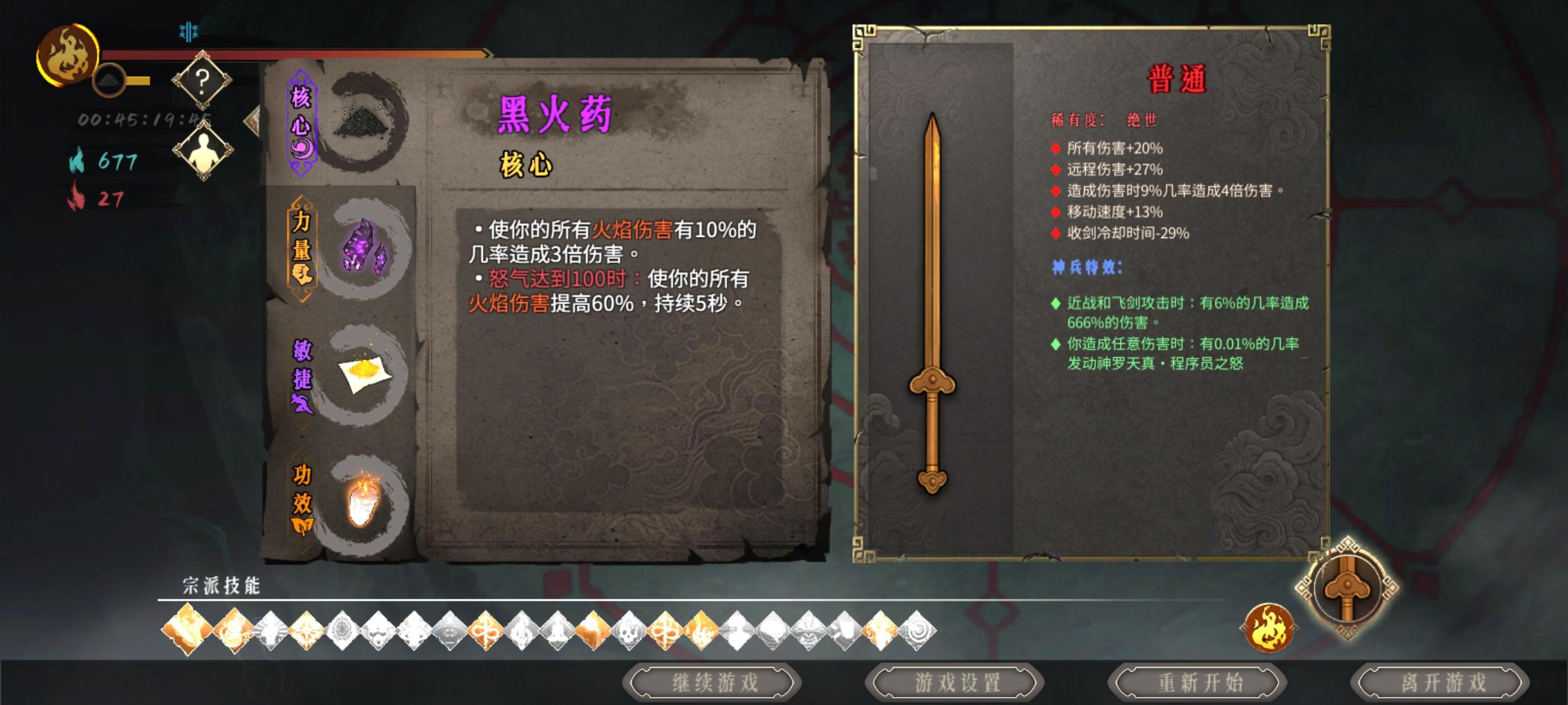 神行1 忘放词条了 一号猪心或玄武或青冈 二号堕龙 三号虎印 四号猪心 走火必须要,斩龙+斩龙诀,其余全加近战攻击 小图清怪就闪就完事了,清图不亚于飞雷神 boss看准点,直接收剑技能一刀秒,我打皇帝一刀直接出变身下跪 现在七个全过了白灰,但时间较久,一遍研究一边玩的,每个都得半小时