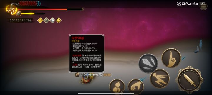 #TapTap年度游戏大赏应援 久等了,进入第九个职业,灭霸响指流的真神——神饮明王。【燃刃】:所有攻击+10%(体现在面板上),攻击时有15%几率额外造成20%的近战的火焰伤害。实测攻击时有15%几率造成1.2倍火伤,计算公式为1.2*近战攻击*(1+火伤属性百分比)。【酒染】飞剑会使敌人进入【醉酒】状态,【醉酒】状态会使敌人受到伤害提高5%,所以飞剑计算公式为飞剑攻击*1.05。剑返