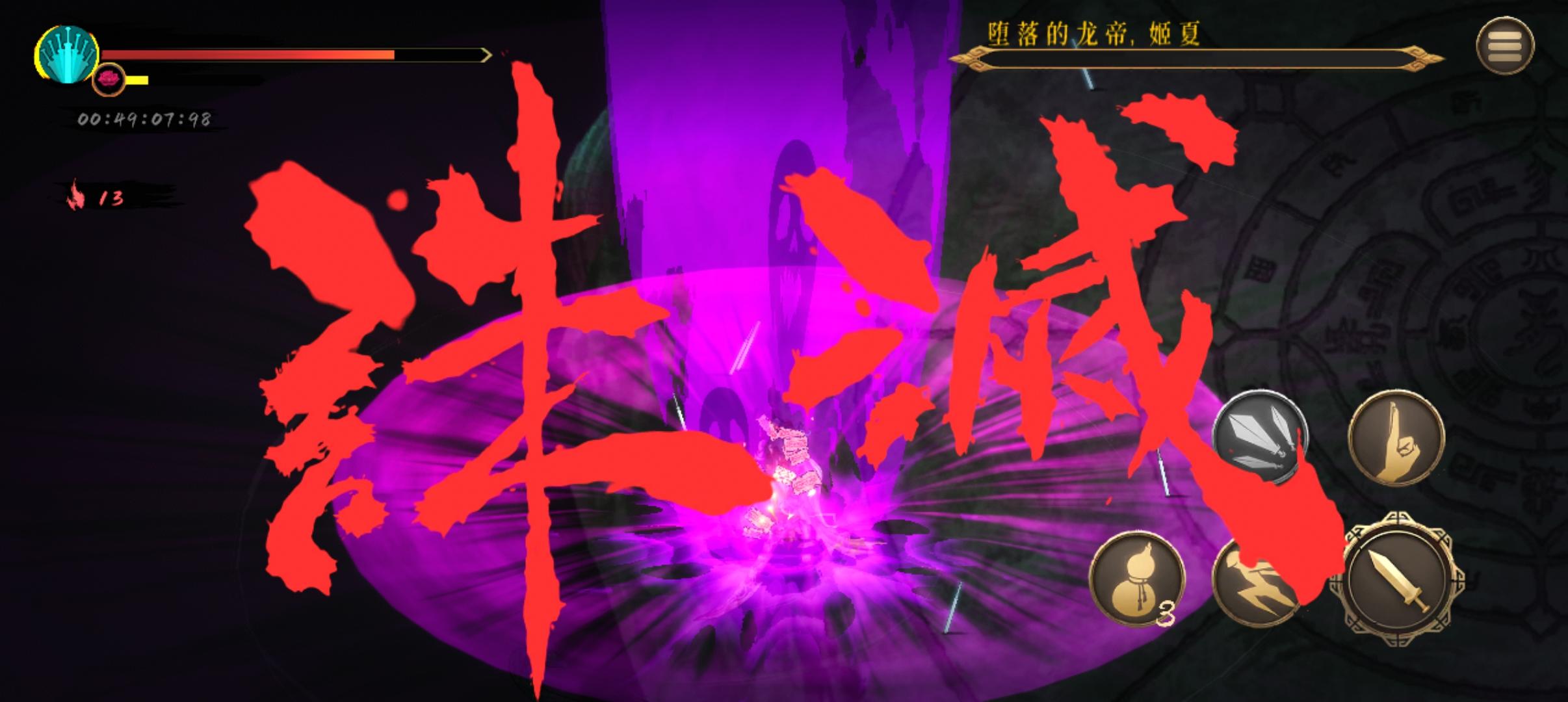 通过开启收剑后的 强化瞬身闪. 可以较长时间保持瞬身的无敌帧. 同时造成大量伤害. 伤害较低时需要注意躲避boss的aoe技能 可以通过左右横跳来达到安全的输出 比较重要的是灰色的技能 强化瞬身时的距离和无敌时间