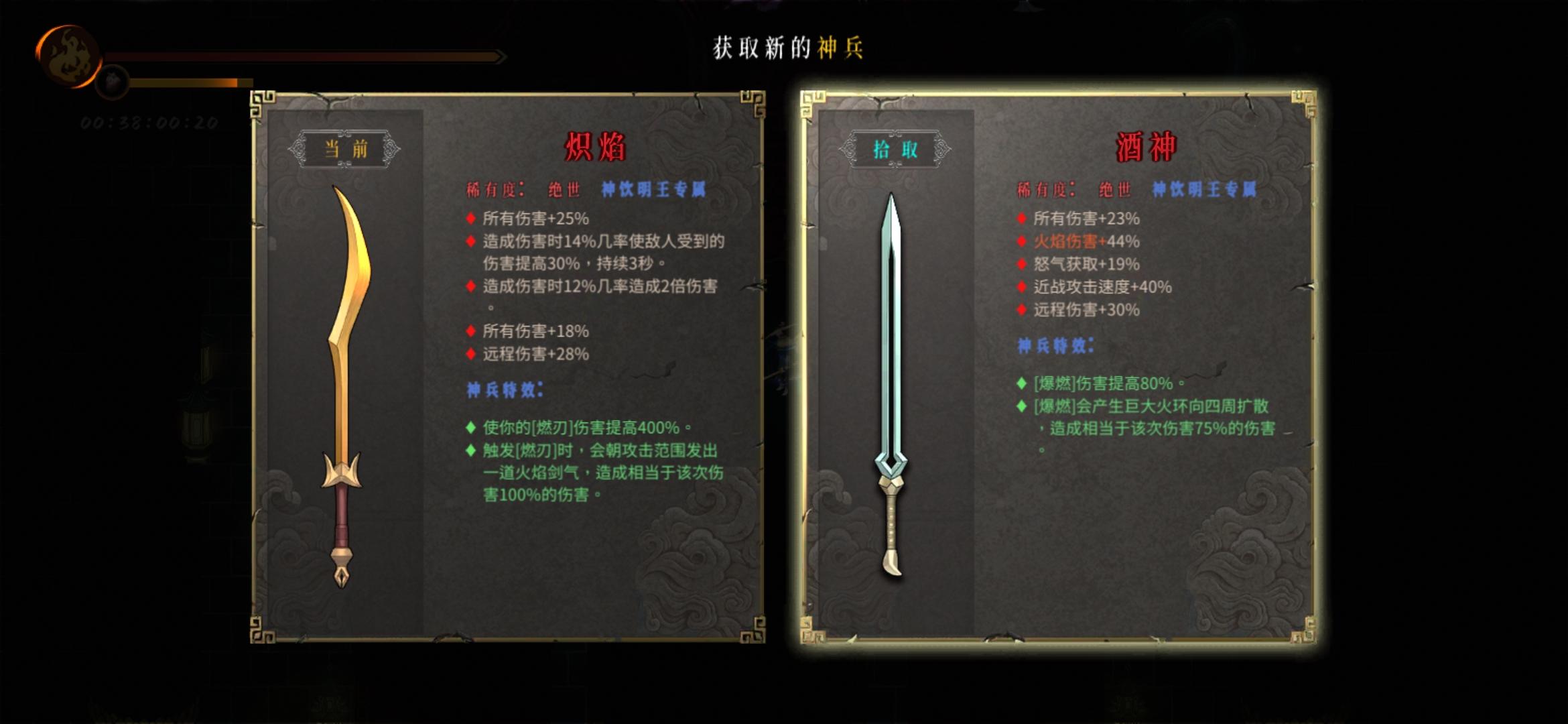 前面就斩龙清怪,boss就直接秒,这把唯一的遗憾就是没有走火入魔,不然伤害更高。 这把运气比较差,秘籍挺少的,唉非酋的痛苦。