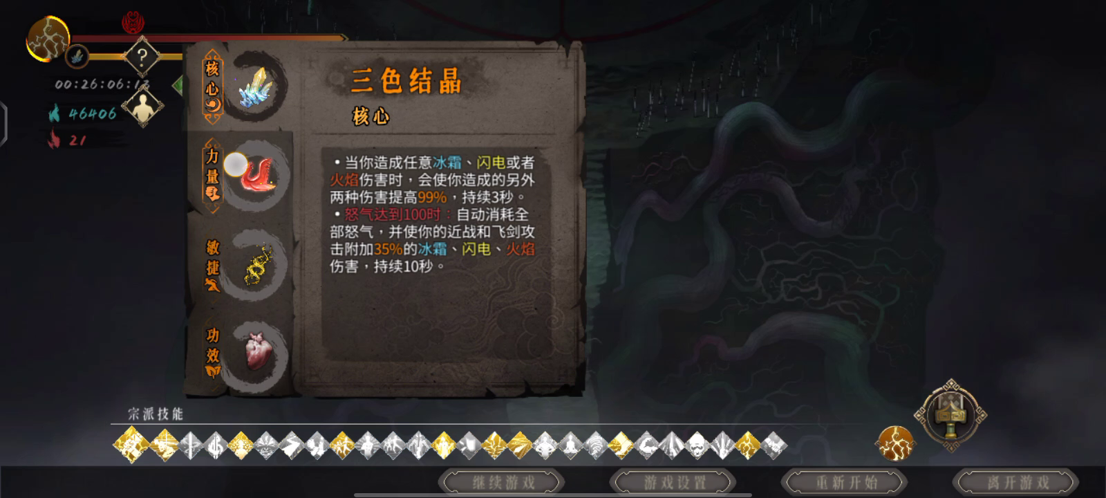 核心天赋 极寒之眼,别的拿伤害和攻速, 武器选择太祖,开局拿四号破冰