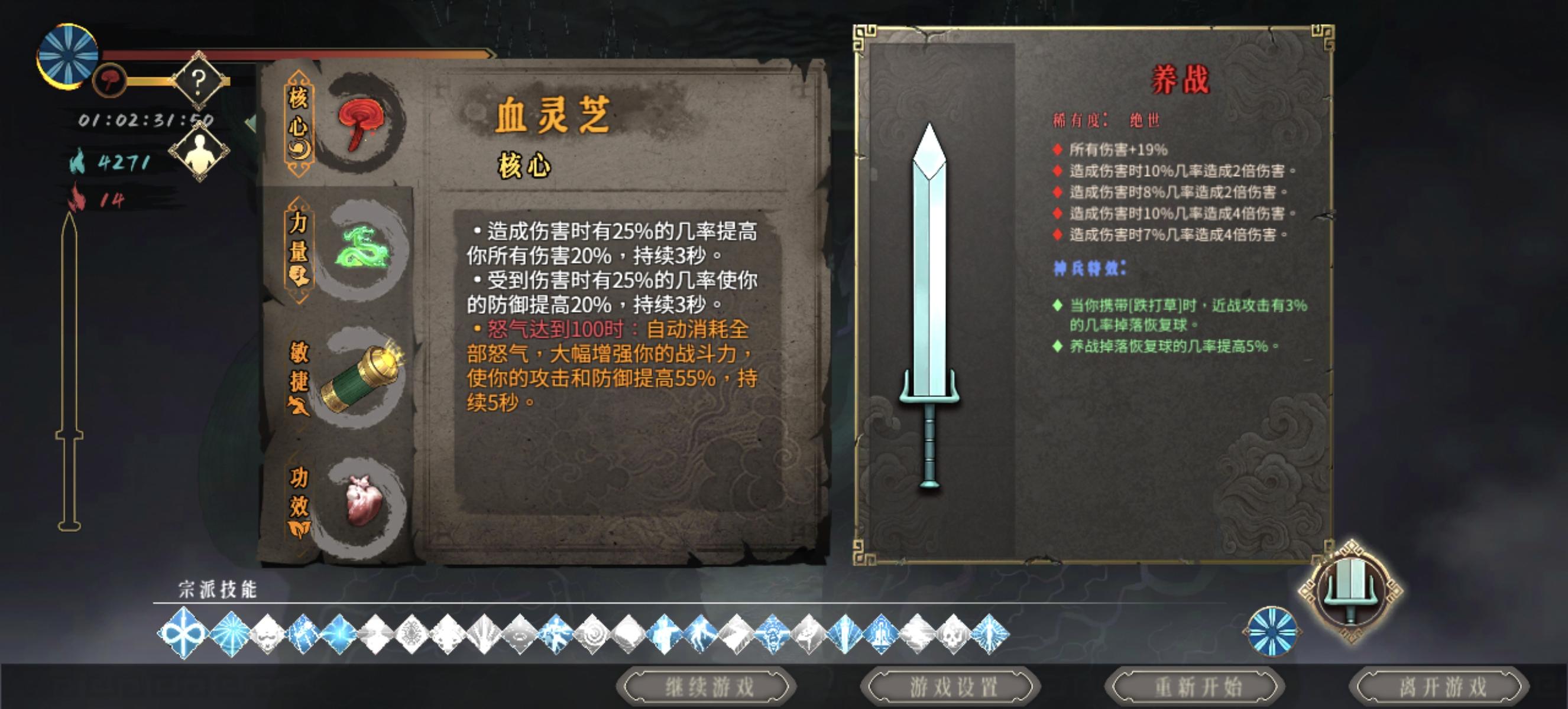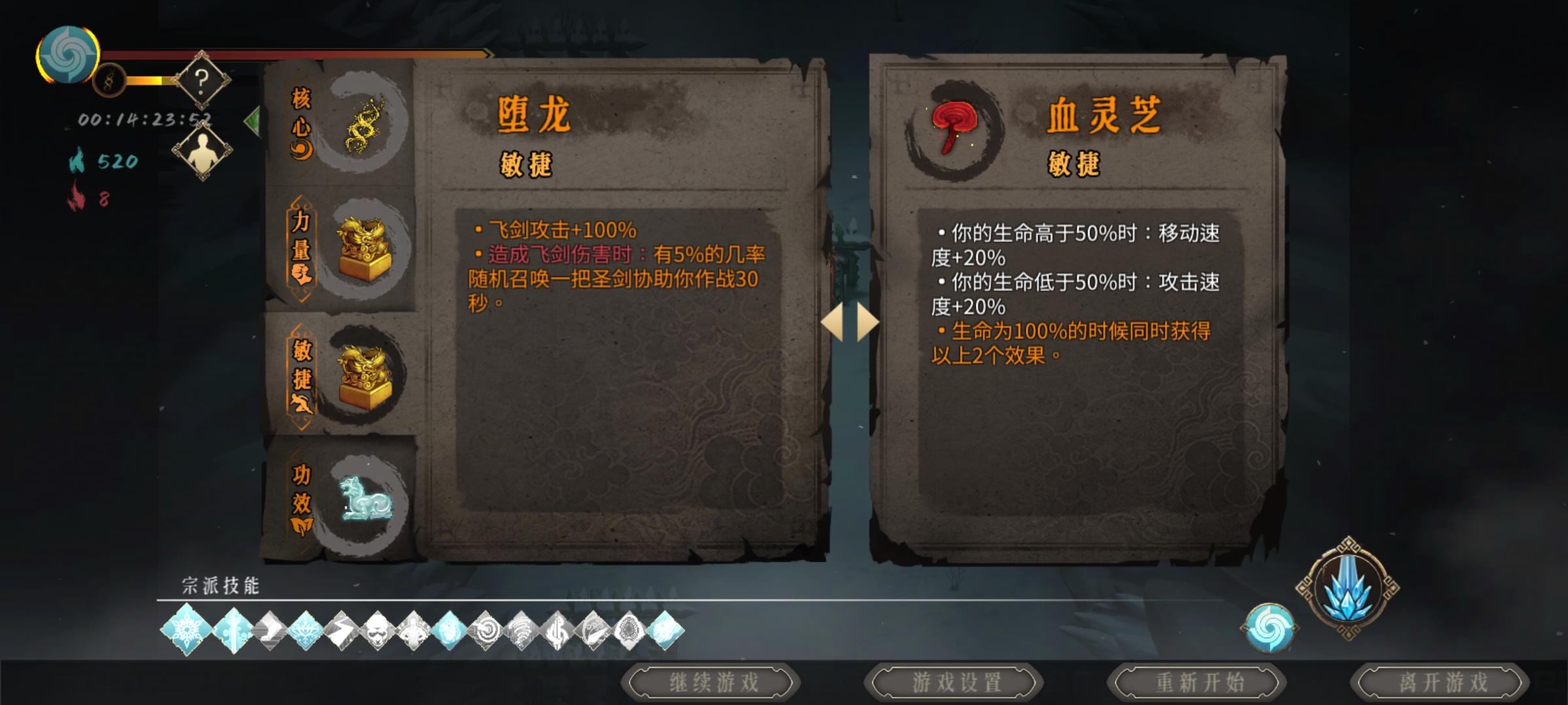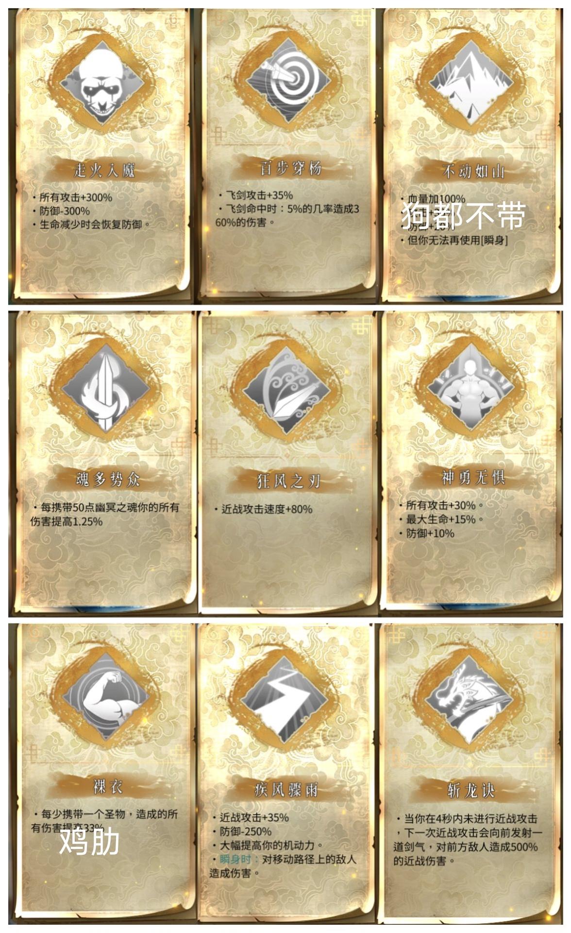 之前玩元素冰实在太刮了,打个八戒打了半天,玩惯了雷1的我哪里受得了这个气,一气之下了重开一把。还是叠攻击方便呐,一刀砍死小怪,两刀鹤三刀龟 技能主要优先选吸血和所有加攻击的,什么元素伤害飞剑伤害都不用(除了风驰电掣和不动如山(不动如山过了鹤再选))斩龙决非常好用,一刀砍死一批 圣物建议1玄武4冰牙,23位任意选择加攻圣物即可(反正1个圣物保命3个圣物输出就完了) 兵器如果能抽到专属就用,不能的话太祖普通都行,刷刷攻击一样能用。专属也只是为了冰冻状态加攻罢了。这套并不依赖冰冻 圣物精炼选加攻