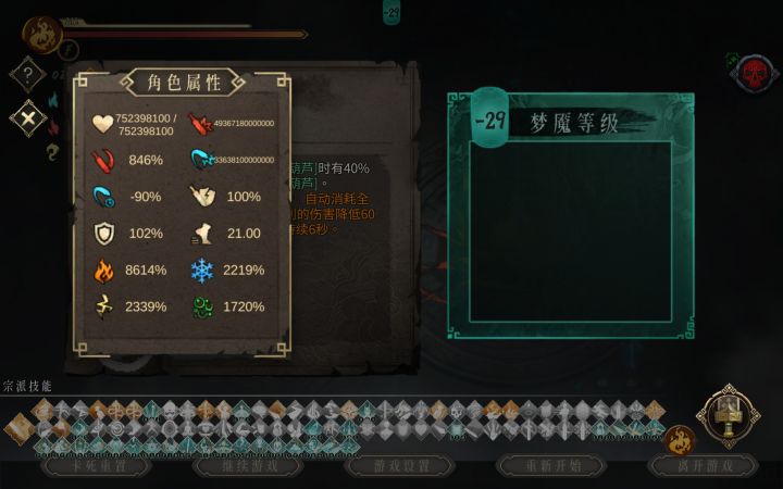 2.关于梦魇技能。虽然我图里是所有梦魇都选了,那是因为我想看看都有啥效果,也就是闲得慌。50层内尽量少选,100层内推荐三个到四个技能,这样法印能多拿伤害,这个非常非常关键,能让你50-100不刮痧。100层之后,一般就可以一指秒人了,不能的话接着拿法印,直到可以。后期其实不用选很多技能,特效多了手机特别容易卡。