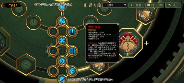 首先,需要说明火二响指流的思路,火二有个技能燃爆,造成伤害会点燃,配合蛇酒技能和武器技能110火伤,达到一指秒人,特别注意不要选龙酒,不要选龙酒,不要选龙酒。