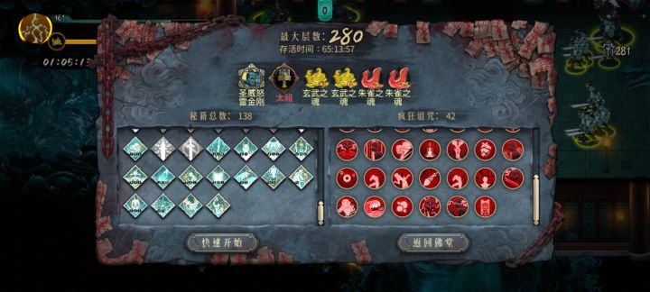 新手关用冷血被虐的死去活来的,以至于留下心理阴影好长时间不敢碰冷血,慢慢会玩一点了尝试解锁冷血皮肤,试了几个套路,果然对我这种手残来说还是壳够硬才抗揍。 这套bd核心就是朱雀4玄武2,朱雀4精炼越多防御越高,玄武2防御越高伤害越高,这俩有了就直接焊死不要动,剩下两个位置随意配,通用功法防御相关的优先拿,有须臾更好,须臾三效果是移速加伤害,这样大关卡休息点加防御移速的选项都能转换成伤害了。 所以开局自选圣物必须拿玄武,朱雀前期精炼数不够有等于没有,自信脸够白后面能出的可以不用sl直接开局随什么用什么都可以,一件玄武2第一关小怪就已经打不动了。 boss小怪打身上都是刮痧,走火入魔等减防的功法一定不要碰,精炼全选攻击,本来壳就够硬了,点生命纯浪费,伤害是一定够的。