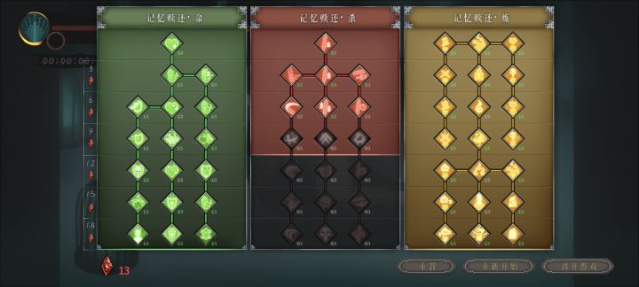 我是用接近两三个小时打完了狂雪新手教程完之后,直接打普通模式,相信老玩家都可以一遍过的然后然后点黄色,幽冥之魂那些不用点,赶紧把自选宝物给点出来,点出来之后先把宝箱点出来,之后再点绿先点黄再先点黄,再点绿,把瞬发葫芦点出来红色的可有可无,最后再点打完一个难度,直接向下一个难度进发核心的就是,三号位的踏风草,角色建议用无量尊者贯日武器在下图,对于无量尊者来说,专武其实比太阿好用,大家可