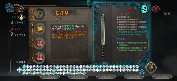 用的剑二,主要是点攻速圣物的话一号位酒葫芦二号位大骨三号位好像没啥特殊的,我带了个凝气,攒怒气四号位要凝气蛮武:“我是天选,也是唯一”限制性比较大,需求比较多,打小怪的话很快乐,但是BOSS话说实话有点刮(对比电一,或者屠龙),主要的就是个快乐,因为触发了那个只有最后一击之后,纯纯的拜年剑法,再加上酒葫芦提供的闪避,摁住攻击不松手就完事了。随便录的,其实如果你足够欧的话,可以打出满