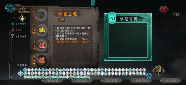 无聊的力量,摸鱼时爬一会,不知不觉就800+了。分享一些心得:1.装备:出门猪心1朱雀2,找玄武和跌打草,猪心1玄武2跌打3朱雀4,武器太祖(方便度过中期)。后期跌打1朱雀2其他随意,跌打药葫芦是神技;2.技能:专精秘籍找蛇酒(废话),梦魇秘籍生命>怒气>收剑冷却>治疗>防御,实在缺点燃可以拿个火雨,其他前期不要碰,避免污染法印池,刷不到直接右上角梦魇等级-1;3.法印:生命转攻击(拿到