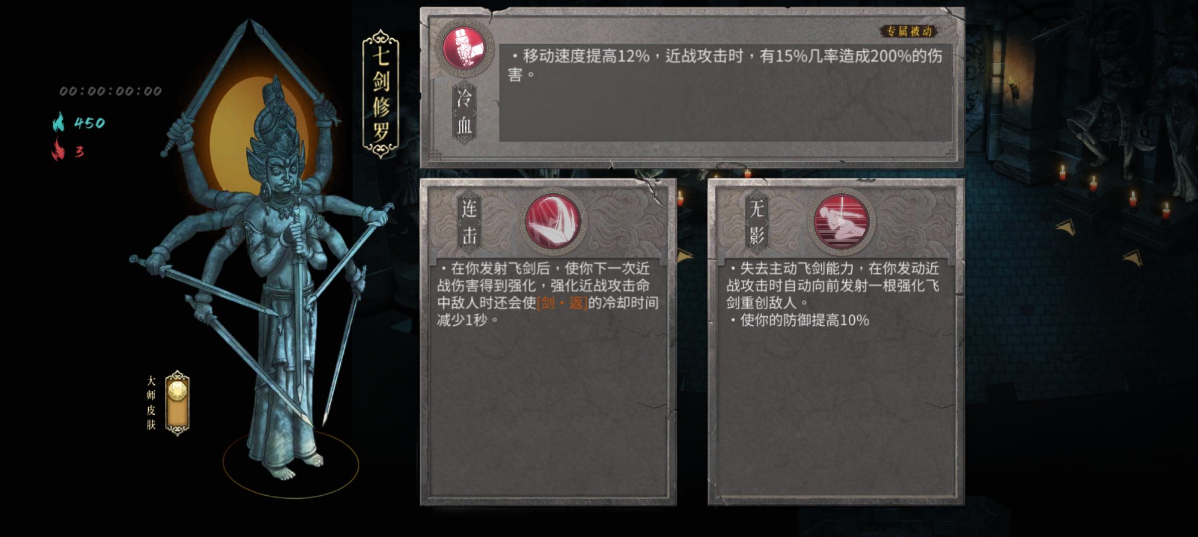 移动端七剑修罗连击(剑1)流派被动需要修改或重做。可以看到被动的最佳触发方式是飞剑和近战交替使用。(如果单靠飞剑的话,浪费被动伤害差很多,而且这样为什么不去玩无量或者其他带属性的飞剑?)电脑上可以鼠标左右键轮流一起按,但是手机上大家只会用一个大拇指。来回按飞剑和攻击键效率很低,要是用右手食指中指这种高端音游操作,因为要一直这样按,所以比音游还累多了。其他流派的飞剑系前期或多或少都需要一些近战攻