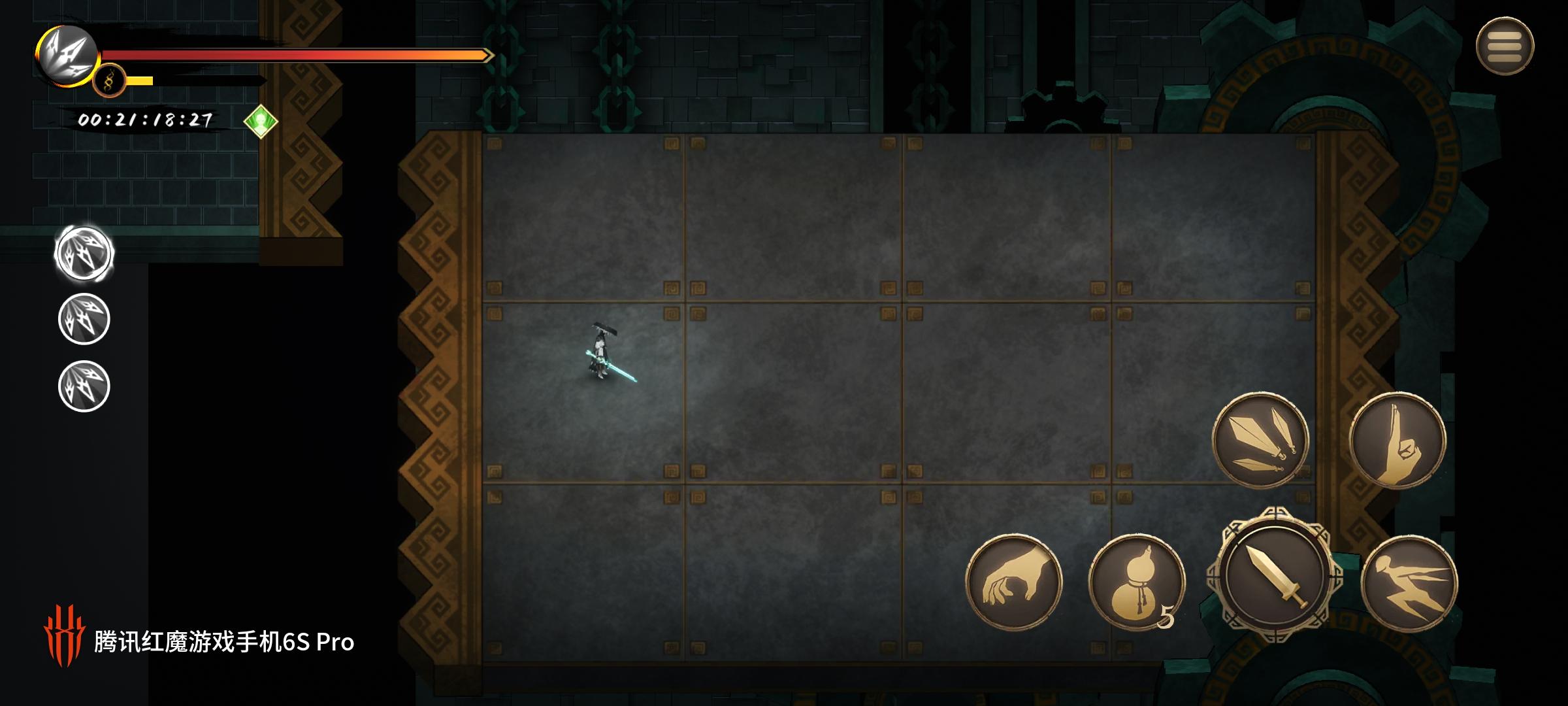 这个方向键指定有点毛病,玩其他游戏都没有断触的情况,就这个游戏,a着a着就给你自动断触,然后闪避只能朝人物方向闪避,手在哪里滑半天不动,手在屏幕上方向键就是不出来,非要划一下才出来,设置固定位置还要正好划到方向键中间那个小圆圈才能动,能不能再阴间一点啊,这操作属实难。