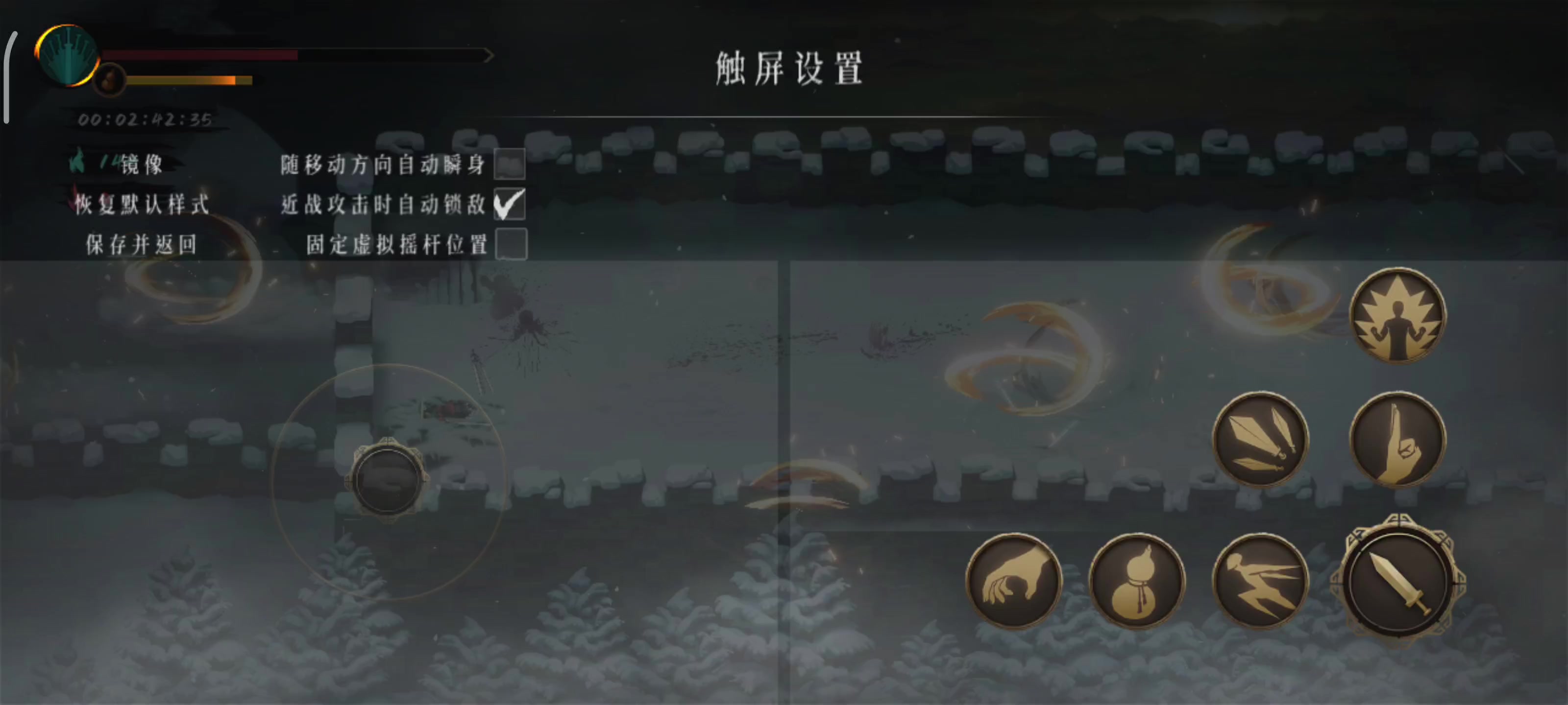 第一点,先看视频,我采用了方向固定的游戏方式,此时由于方向触摸按钮固定了位置,移动触发也应该更改一下,看视频,我在触摸非中心位置的方向按钮时,没有任何的触摸反馈,意味着我就必须从中心处向移动方向滑动才能触发角色对应的移动,这就造成了一个感受——不跟手,这就是我要提出的第一个优化方向建议,移动端和pc端不同,做不来很精细的操作,所以这种“跟手感”就显得尤为重要。 第二点,飞剑必须点按一次才能触发一次飞剑飞出,建议改进方向为可以长按持续释放多次飞剑,可以比快速点按的频率低一些,但是建议改进这个按钮的触发方式,因为移动端大多数人还是二指游玩(左右拇指),每次触屏并不能做到完全准确,减少操作频次可以明显提升游戏体验,毕竟长按攻击可以做到多次近战攻击,长按飞剑也应当可以多次释放飞剑。 第三点,建议取消移动闪避合一的触发方式,理由同第二点,触屏做不到完全准确,也不是每个人都会拥有一个游玩外设,这种操作逻辑在我看来就是反直觉的,所以更建议取消这种操作模式,把闪避按钮交给方向键之外,闪避时机交给玩家自己判断,而不是“不小心”就触发了闪避