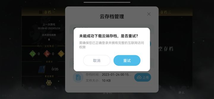 兄弟们为什么本地存档丢失,云存档还无法下载。好难过呀,全记录白雪通关,还有还几个时间压到25分钟以内。这下全没了。心态爆炸😭😭😭😭😭