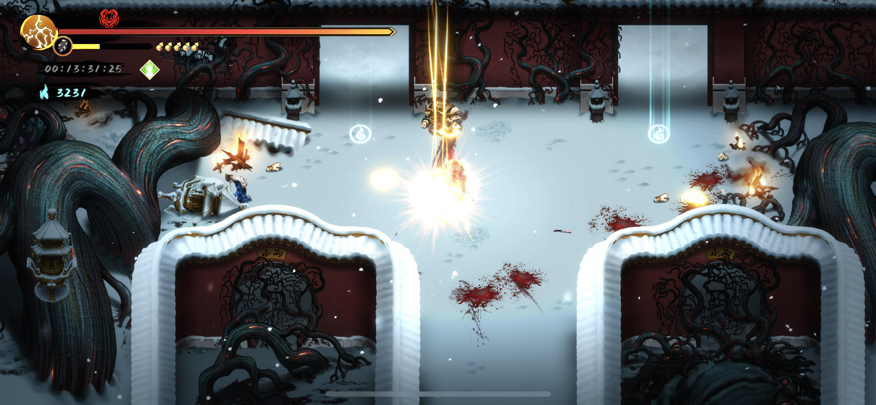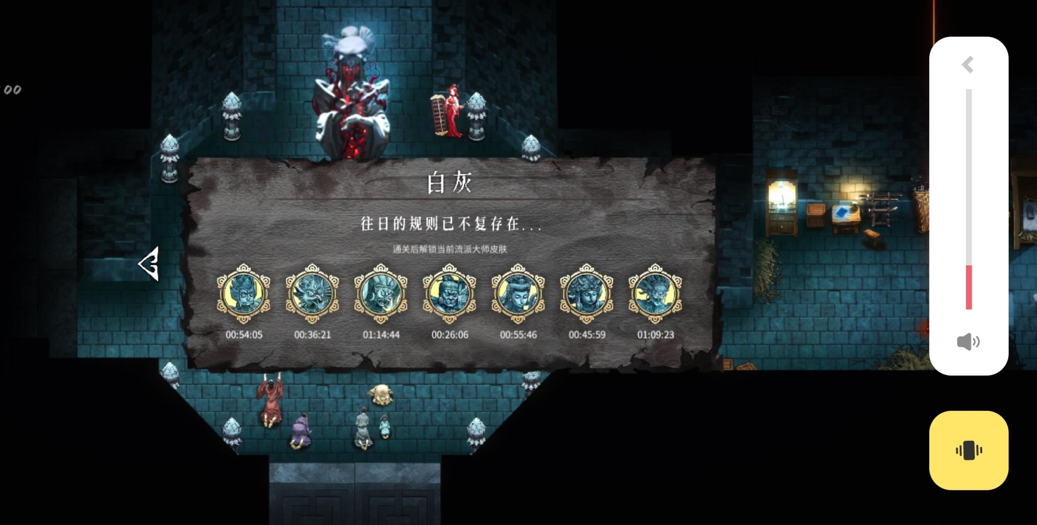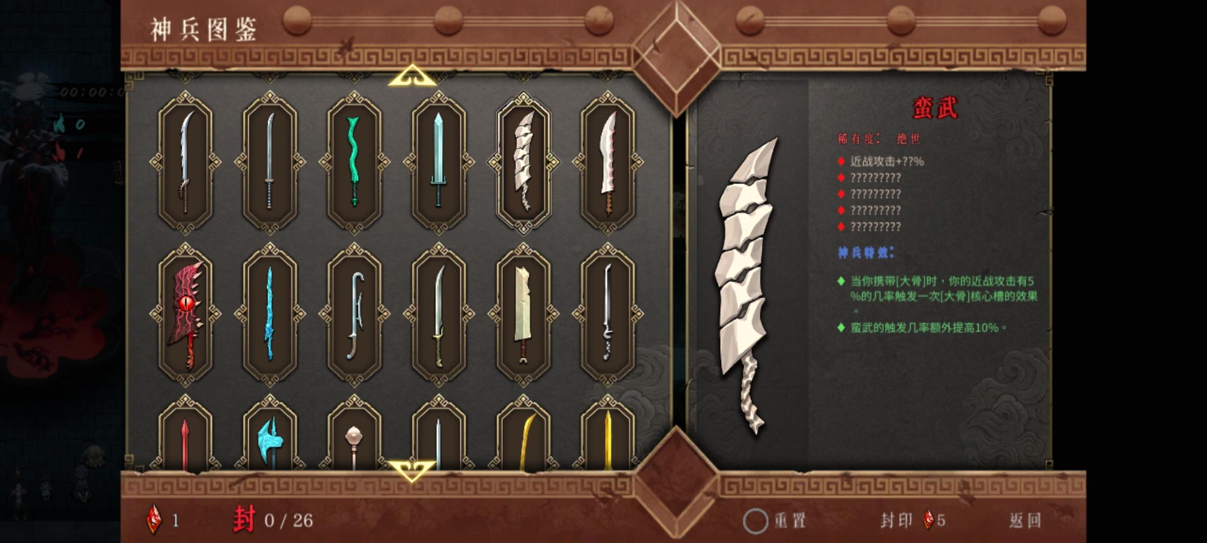 刚才玩了一局,虎关不知什么时候时间暂停了,一直到龙关时间才走!中途重置关卡一次,不知道是不是这个引起的!直接看图吧!第一张图,时间颜色灰色,暂停状态,第二张图进龙章了才开始走时间。另外,这是更新是不是有暗改?武器重铸减CD出的几率低了好多,重铸了30多次才出一个-CD!还有蓝魂是不是也调低了,买了一个100%的挑战,武器一个+85%蓝魂,然后开小偷才给不到1000的蓝魂,打到后面没有武器的+8