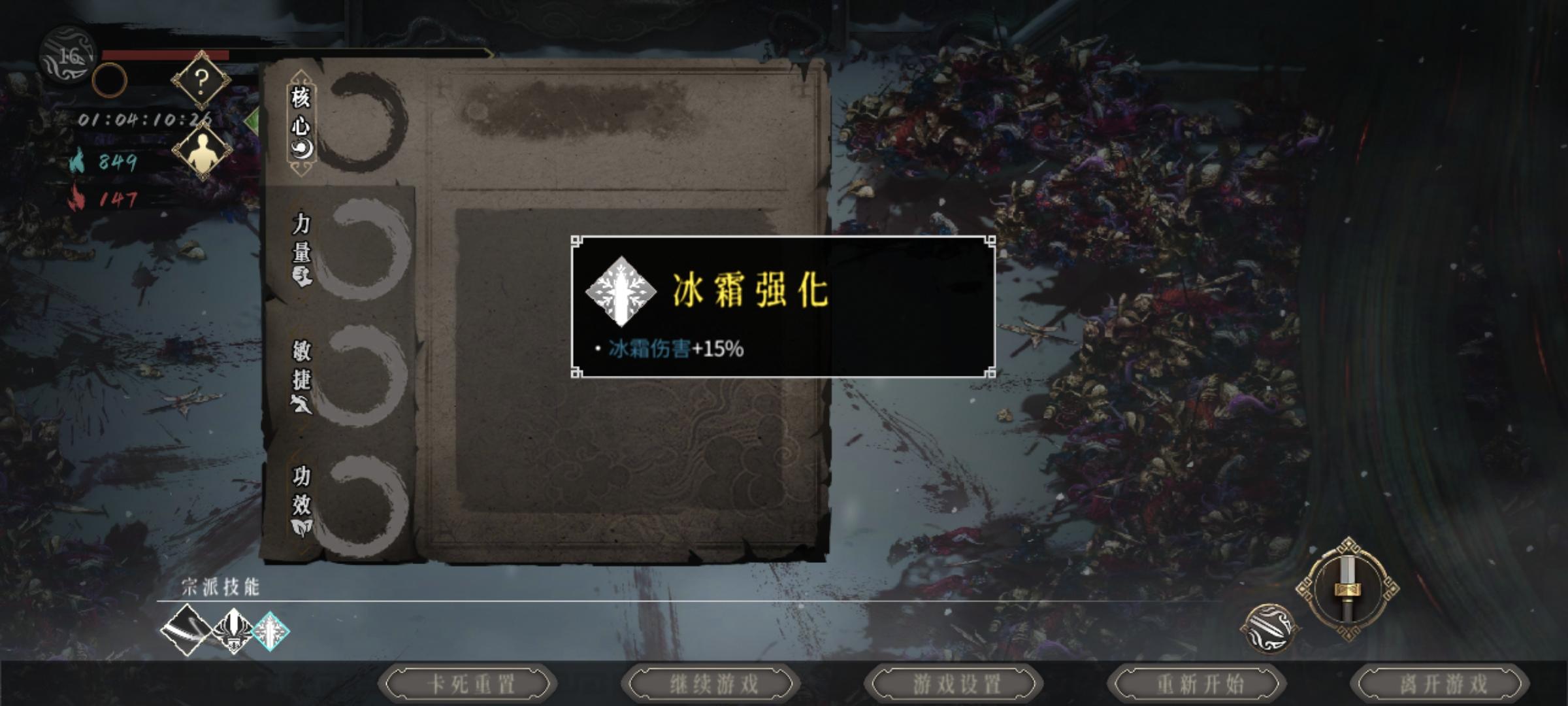 带的震波那套,技能带的千年寒冰加吸血加霸体还有个啥忘了。