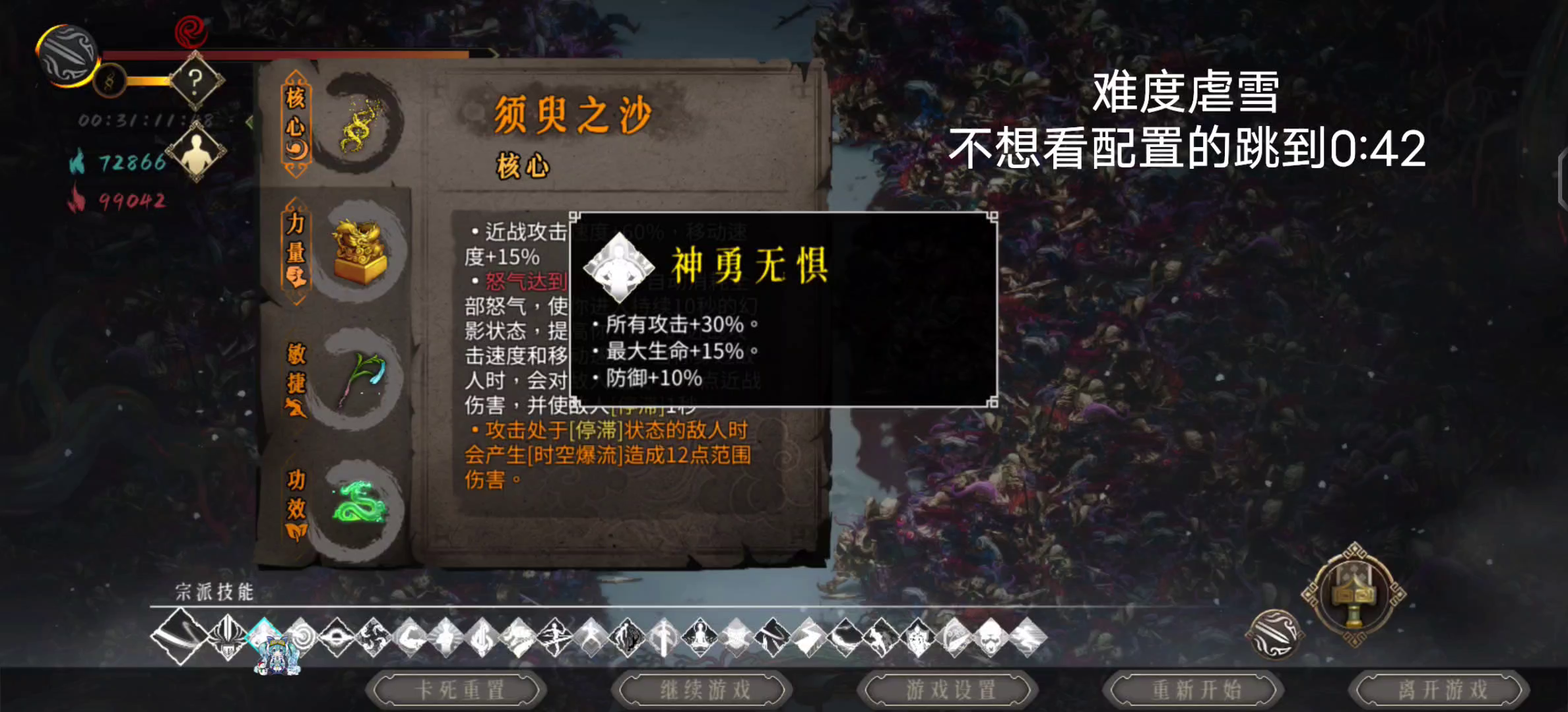 这把是玩这游戏以来最欧的一次,开局核心随了个狼毛,自选了一个堕龙,秘籍斩龙,开局第一个路口选了个精英boss直接出了一把斩龙武器😂boss又出了一把堕龙,18分多点就通关了,就这还是手残经常卡墙丢小怪,圣物也都分解了。鹤之章的时候有机关老头的50真伤,打了一波眼睛就结束了。不手残不分解圣物估计能更快😂