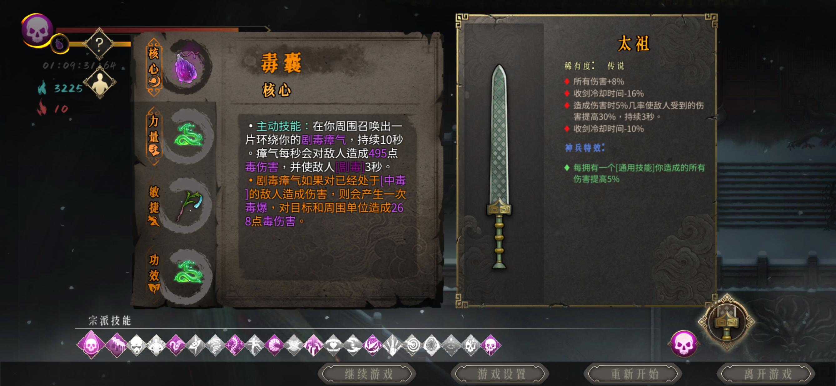 神行1 1须臾 2堕龙 3青钢 4猪心 武器斩龙,技能必备斩龙诀,其他无脑叠各种加伤害和攻速,冷却的。